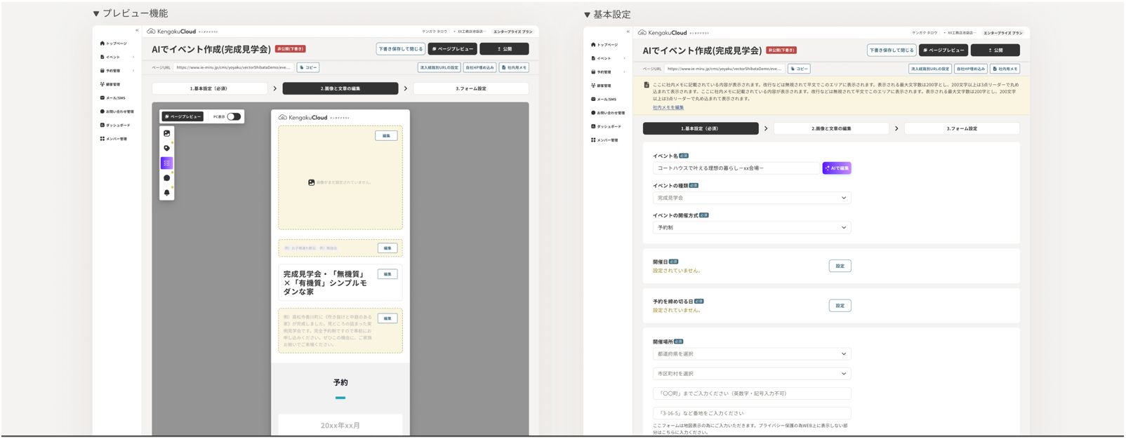 さらに、AIがイベント名や紹介文を自動提案する機能や、ページ編集時に仕上がりを確認できるプレビュー機能も実装。誰でも簡単に高品質なイベントページが作成できるようになりました。