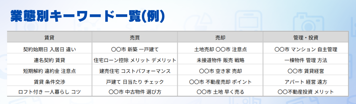 「AIコンテンツ生成」は、4,000サイト以上の不動産ホームページ制作実績と、累計10万記事以上のブログ執筆実績で培ったノウハウを活かし、SEOに強い不動産専門のブログ記事を生成AIで自動作成できる機能です。