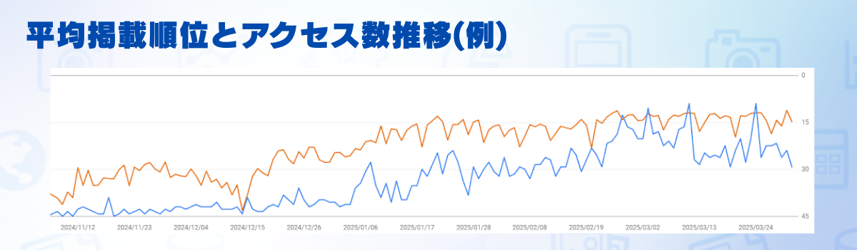 ▼平均掲載順位とアクセス数の推移 ※Googleサーチコンソールより