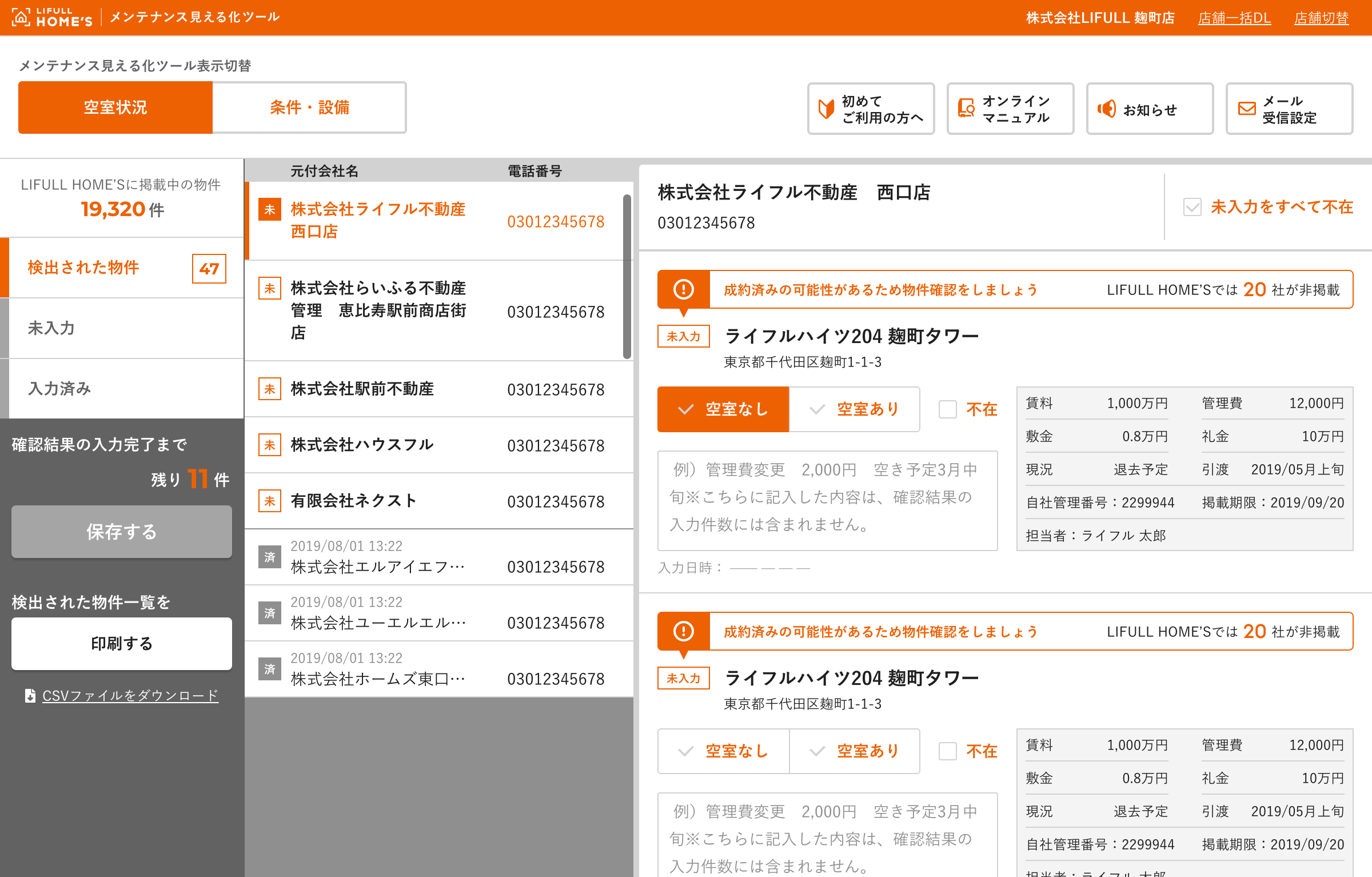 LIFULL HOME’Sを利用する方へ、精度と鮮度が高い物件情報を提供することに加え、不動産会社の煩雑な業務を効率化させることを目的に、2019年12月に「メンテナンス見える化ツール」の提供を開始しました。