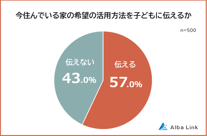 ・今住んでいる家をどのように活用してほしいか子どもに伝える人は57.0%