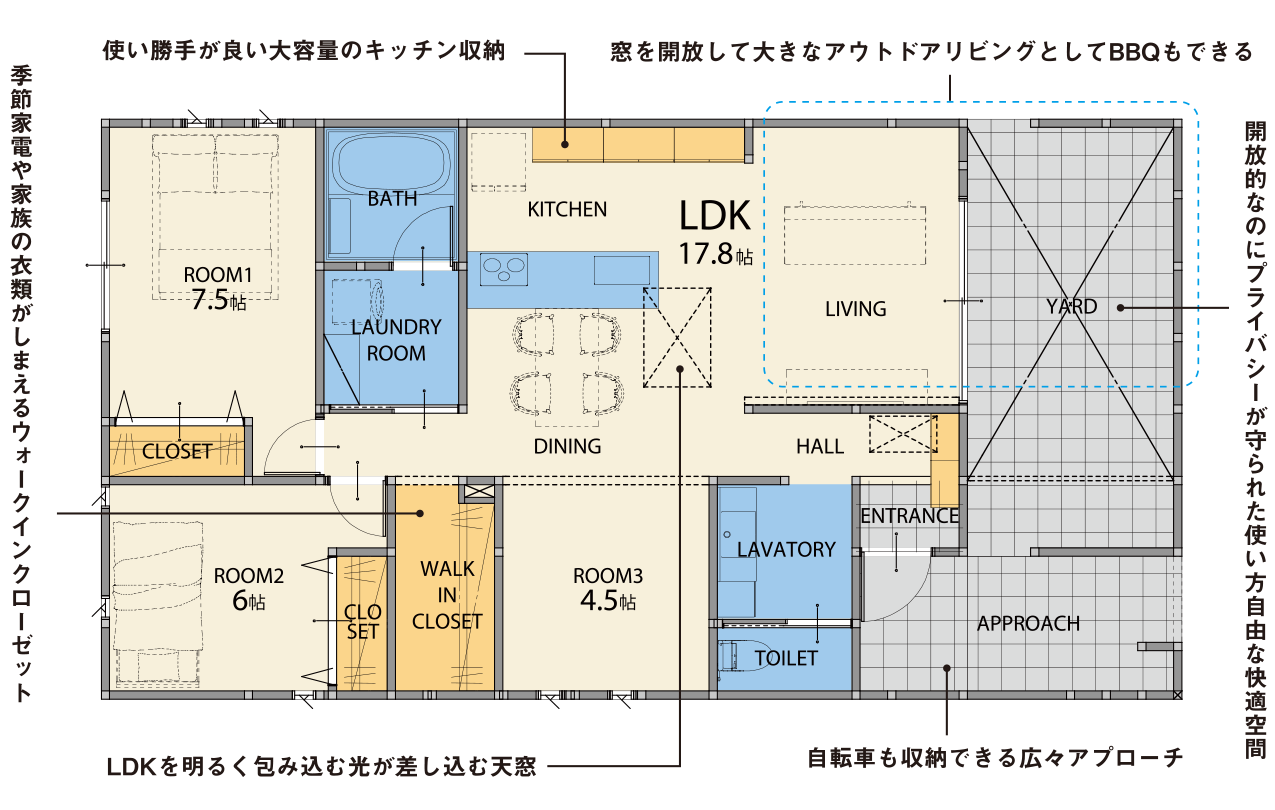 ✓ 自転車やキャンプ道具もおける玄関前のアプローチ