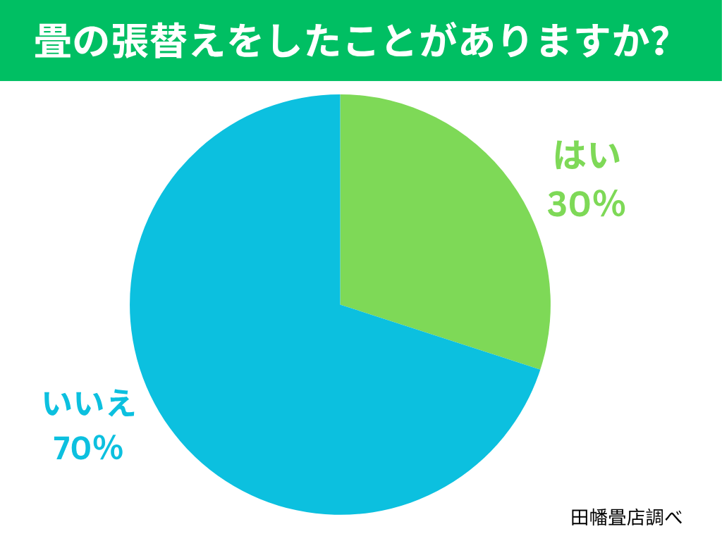 「畳の張替えをしたことがありますか?」と質問したところ、「いいえ」が70%、