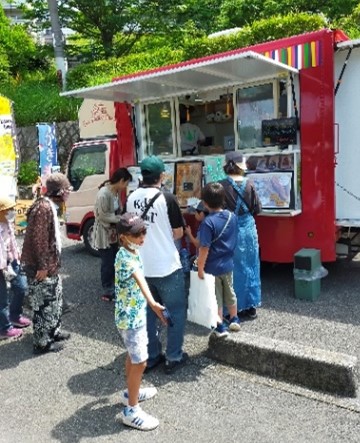 0縁マーケット(不用品を無料でお持ち帰り)、DIY体験、手作り雑貨販売、やまわけマルシェ弁当販売、⾎圧測定・⾜の筋⼒とバランス測定、バルーンアート、ハンドドリップコーヒー・アイスコーヒー・⼿作り焼き菓⼦販売、ネイル体験、盆踊り、紙芝居、キッチンカー(バナナジュース等、キンパ・韓国フライドチキン、たこ焼き・焼きそば)