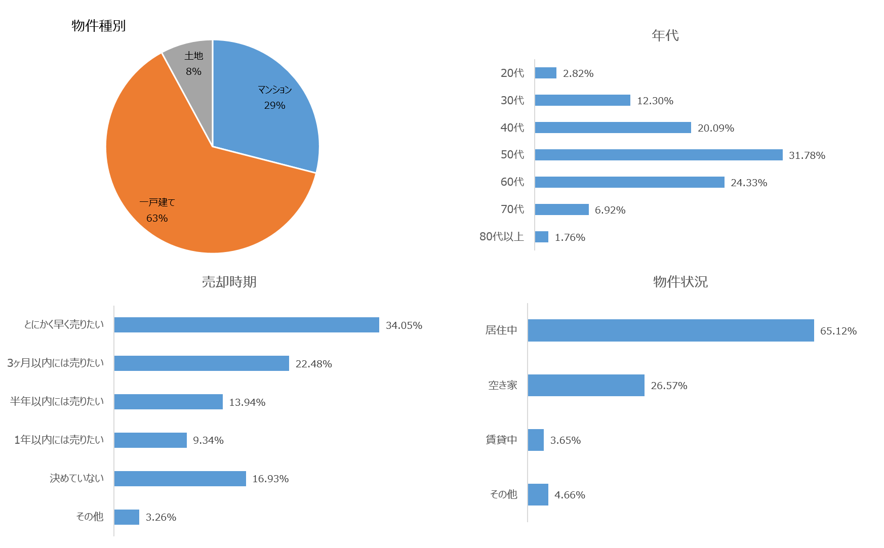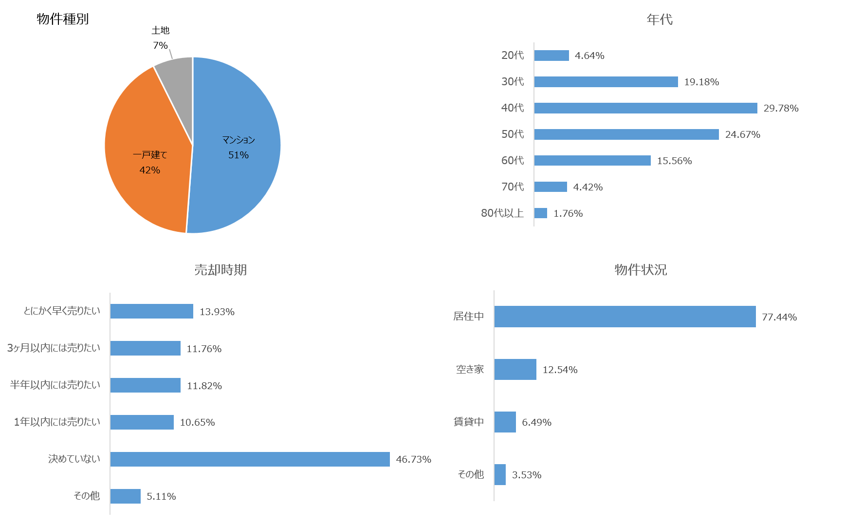 一方、『仲介サービス』をご利用のお客様の7割が現在居住中の物件の売却を希望されています。また、約半数のお客様は売却時期について「特に決めていない」との回答となりました。