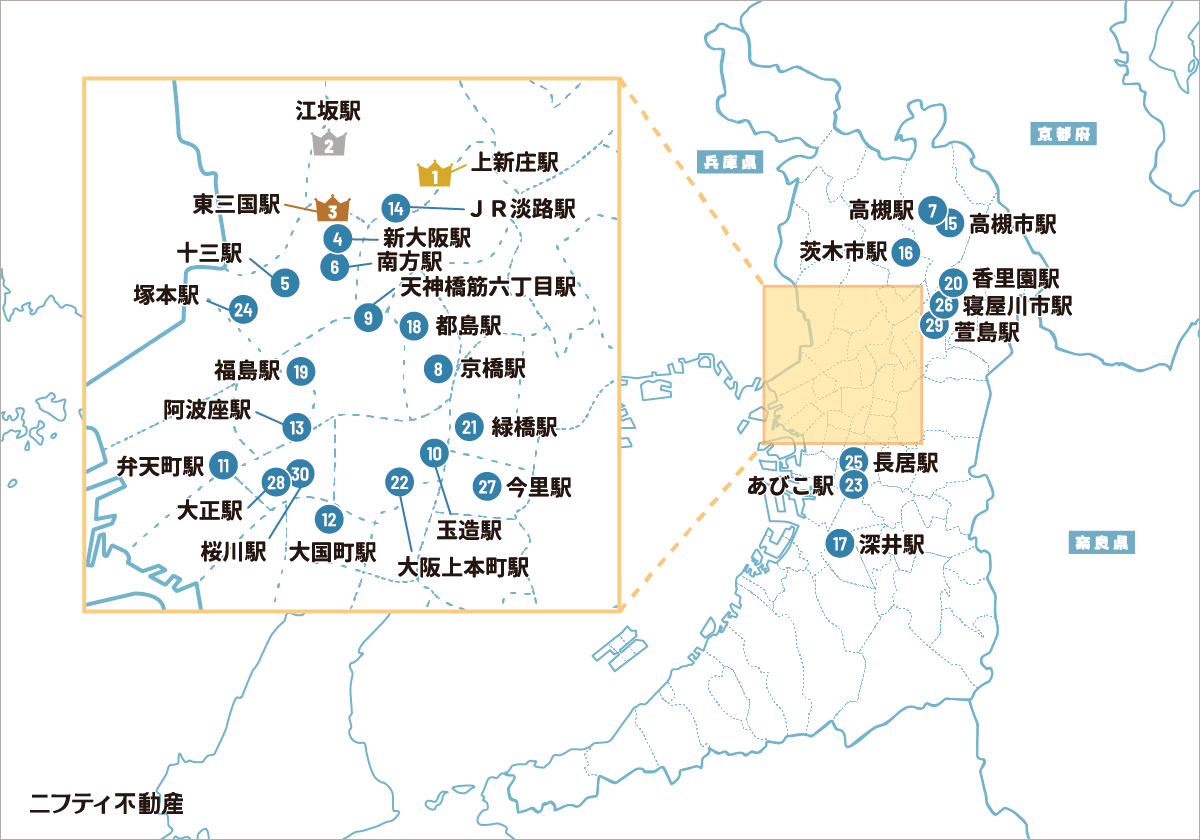 ■大阪の賃貸物件探しで注目の街ランキングベスト30