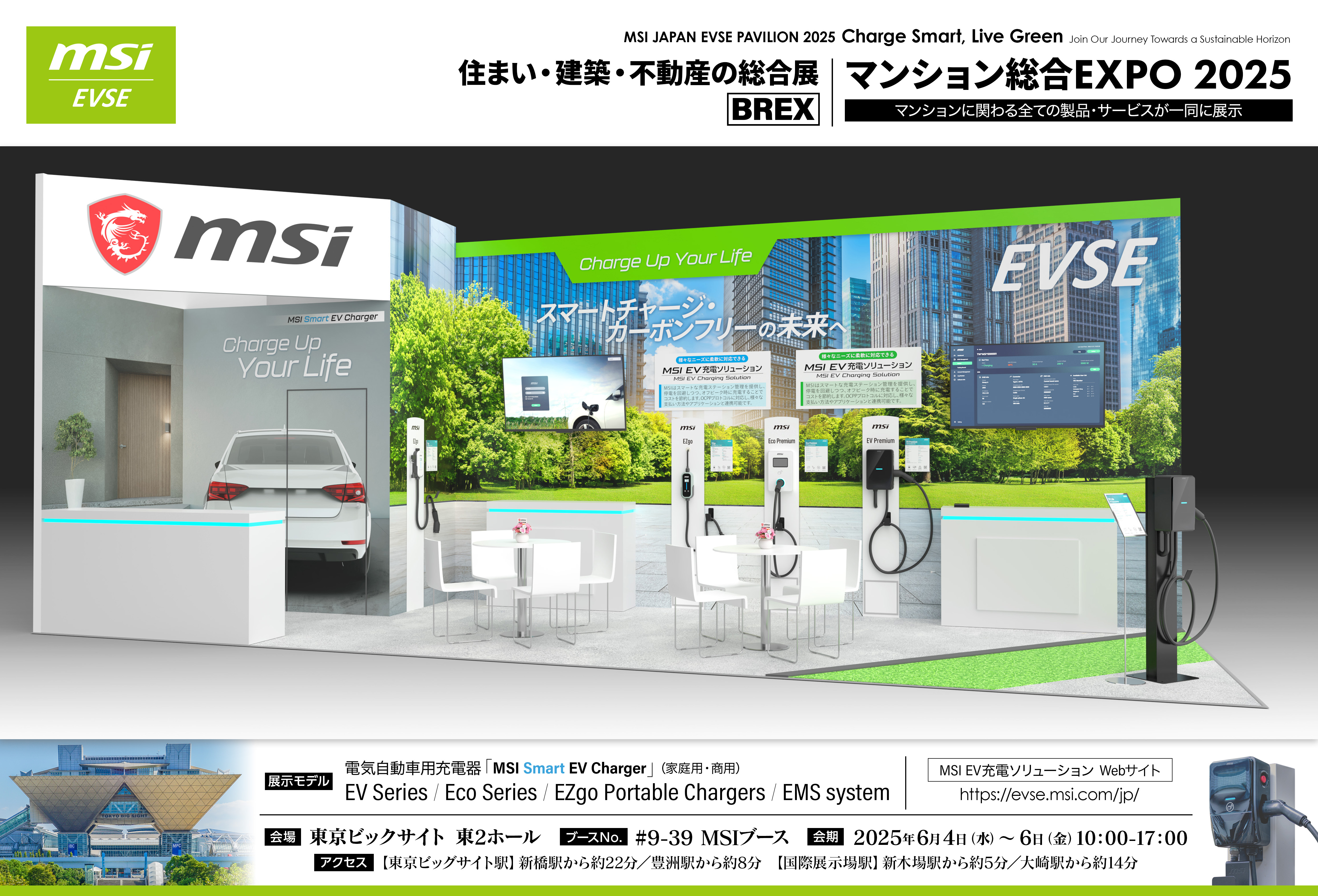 MSIは、これまで培ってきた先進的なEV充電技術を活かし、集合住宅向けに最適化された充電ソリューションおよびエネルギー管理システムを本展示会にてご紹介いたします。建物の設計段階からのEVインフラ整備を支援するとともに、建設会社や不動産開発事業者との連携を通じて、スマートかつ環境に配慮した住まいづくりの実現を目指します。