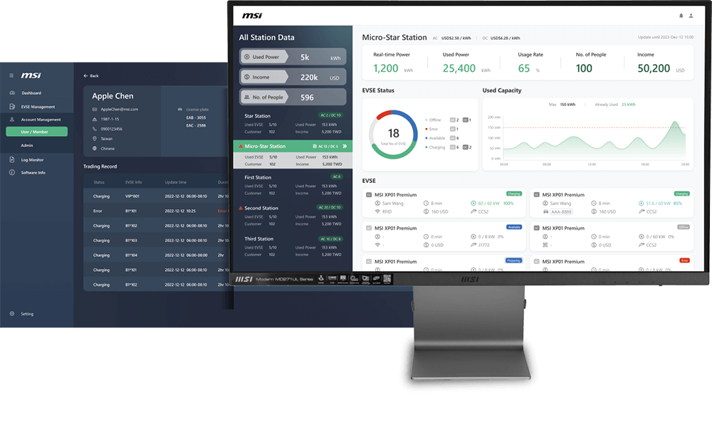 MSI E-Connectは、電力効率とステーション管理の最適化を目的とし、オペレーターや住居管理者がクラウドまたはオンプレミス接続を通じて、モニタリングと制御を行えるようにします。動的負荷分散、時間帯別料金、会員管理、ナンバープレート認証、カスタマイズ可能なAPIサービスなどの機能を搭載。大規模なマンションや商業施設における効率的な充電運用を支援します。