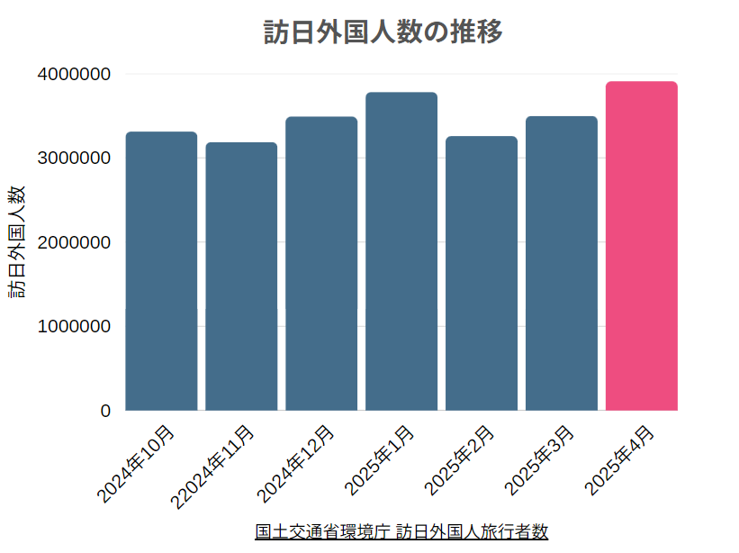 2025年4月には訪日外国人数が390万人を超え、過去最高を更新しました。これは一時的なブームではなく、コロナによって抑制されていた国際移動の反動と、継続的な日本人気を裏付ける動きです。