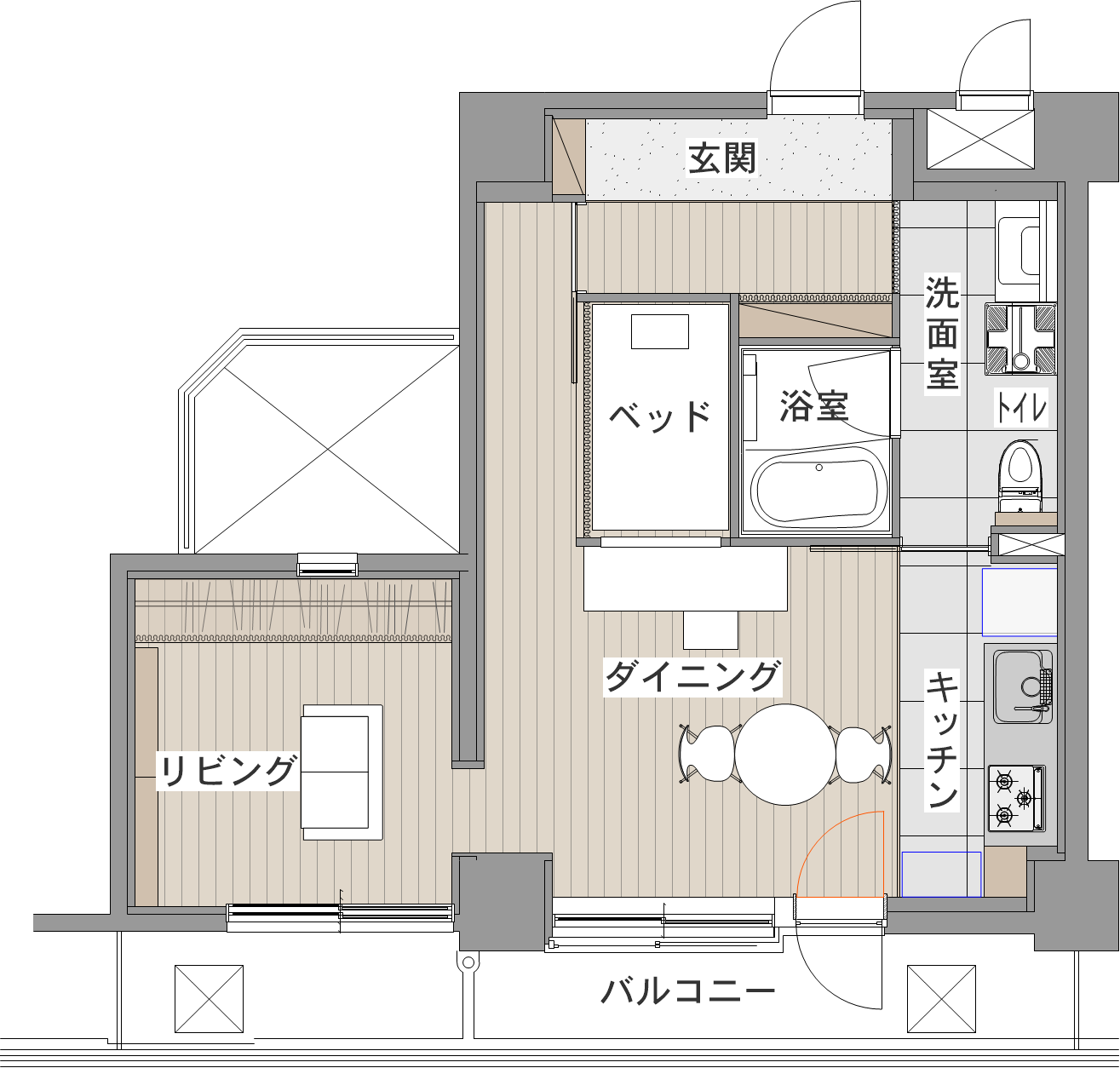 料金には解体・設備・物件特性による費用など、設計施工に必要なコストがすべて含まれた完全定額制。“オプション増額を前提にした価格設計”ではないので『見積もり額=実際のリノベ費用』となります。1㎡単位で料金が決まる明朗さで、事前に誰でも算出可能。さらに標準仕様のままでも十分な品質になっているため、予算が想定を超えることなく、自分らしい住まいを手に入れることができます。