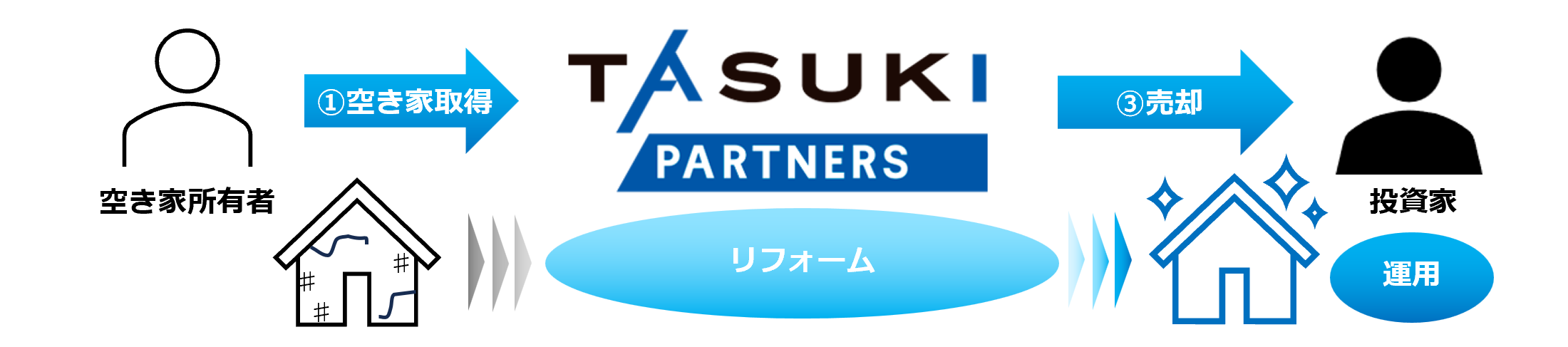 当社グループはこれまで、空き家を積極的に取得し投資用IoTレジデンスの事業用地として開発を行うことで、これらの問題解決に貢献してまいりましたが、前記のような事業環境のもと「空き家の再利用」とのニーズに応えるべく、この度、タスキパートナーズによる新しいアプローチでのソリューションを展開いたします。