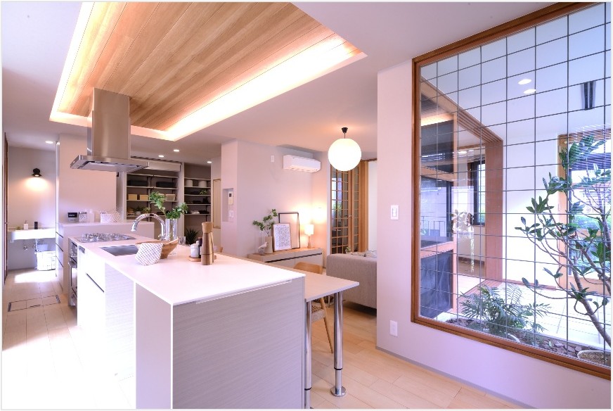 能性を探ります。また、ランドリー機能(洗濯機と「乾太くん」)をキッチンと横並びで配置し、家事動線に配慮したLDK空間を考案しました。