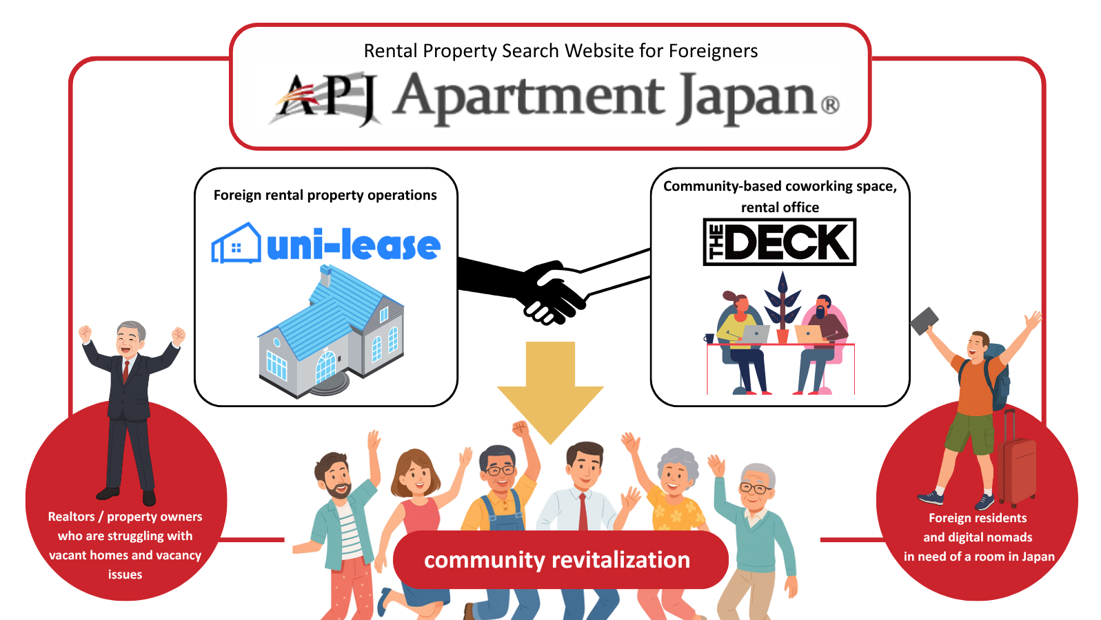 This collaboration between The DECK, Uni-lease, and Apartment Japan demonstrates how regional coworking operators and real estate players can work together to: