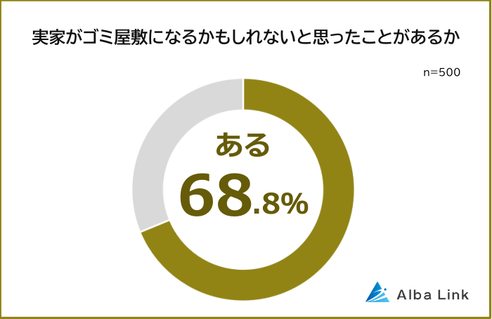 実家がゴミ屋敷になるかもしれないと思ったことがある人は68.8%