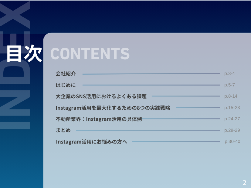 本レポートでは、Instagramを活用し、企業のブランディング・採用強化・販路拡大を図るための「8つの実践戦略」を中心に、部門横断型の運用体制の構築方法や不動産業界における活用事例を紹介しています。
