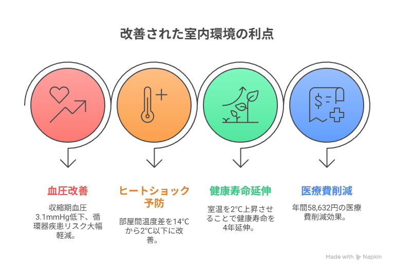 【医学的実証】断熱リフォームで血圧3.1mmHg改善・年間医療費5.9万円削減