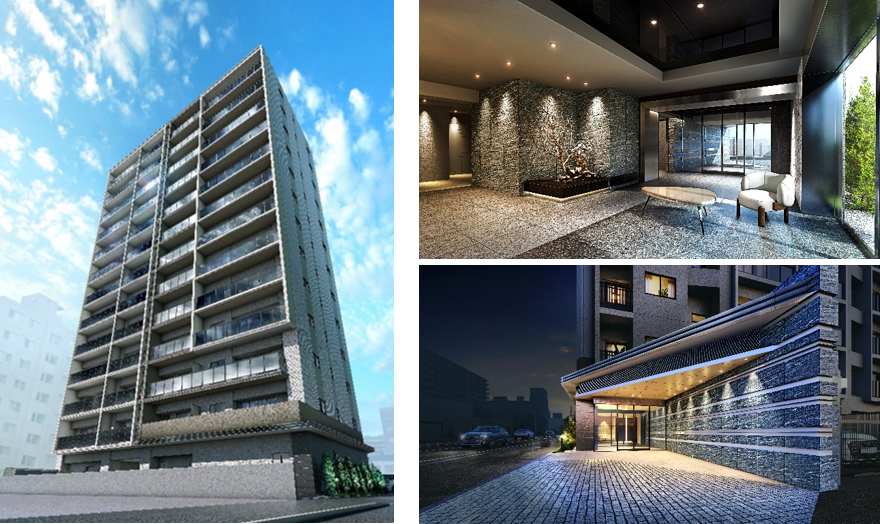 ※掲載の完成予想CGは計画段階の図面を基に描き起こしたもので実際とは異なります。なお、外観の細部及び設備機器等は一部省略又は簡略化しております。家具・調度品等は今後変更になる場合があります。実物と質感・色等の見え方が異なる場合があります。植栽は計画段階のもので樹種・設定位置・植高・本数等は変更となる場合があります。