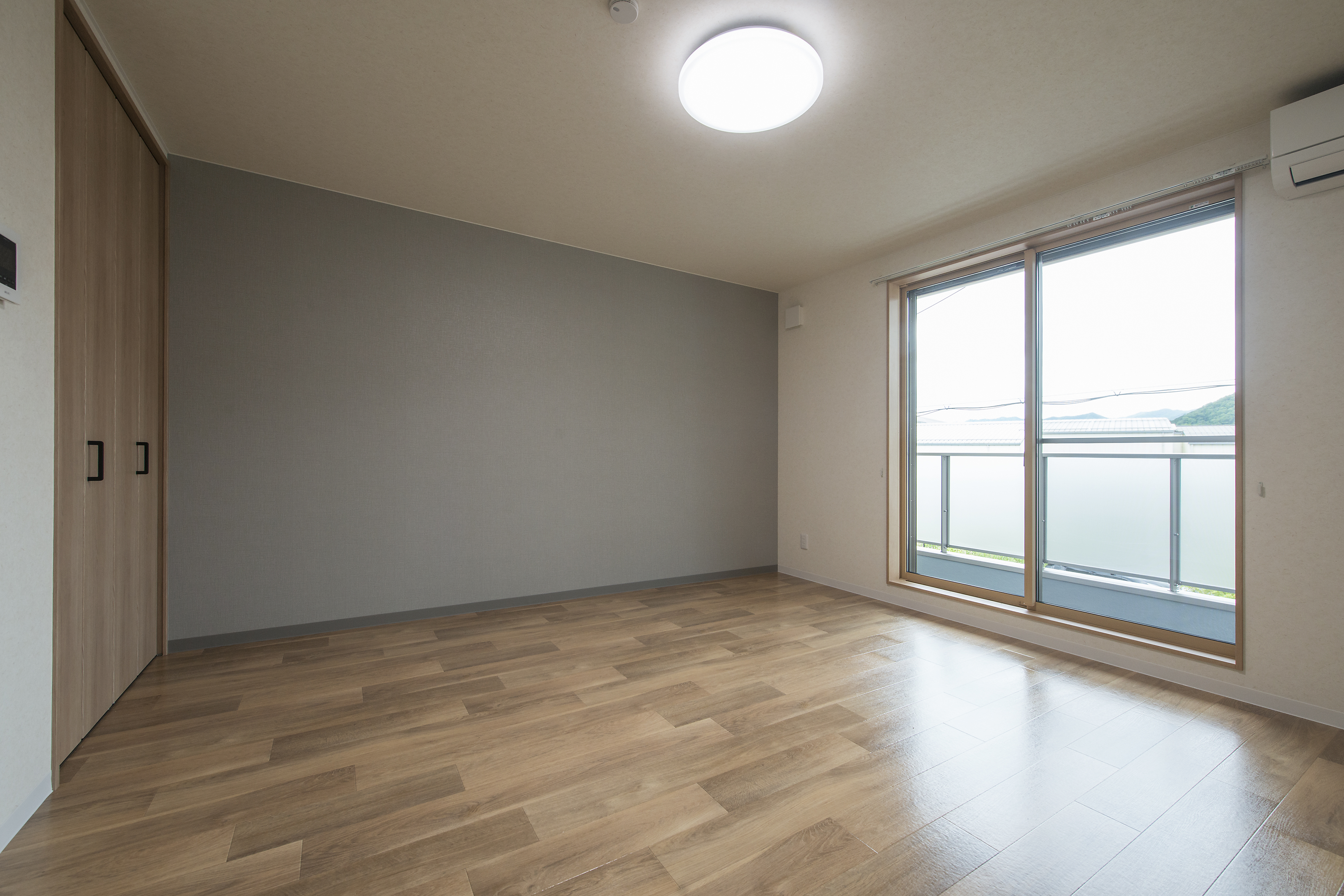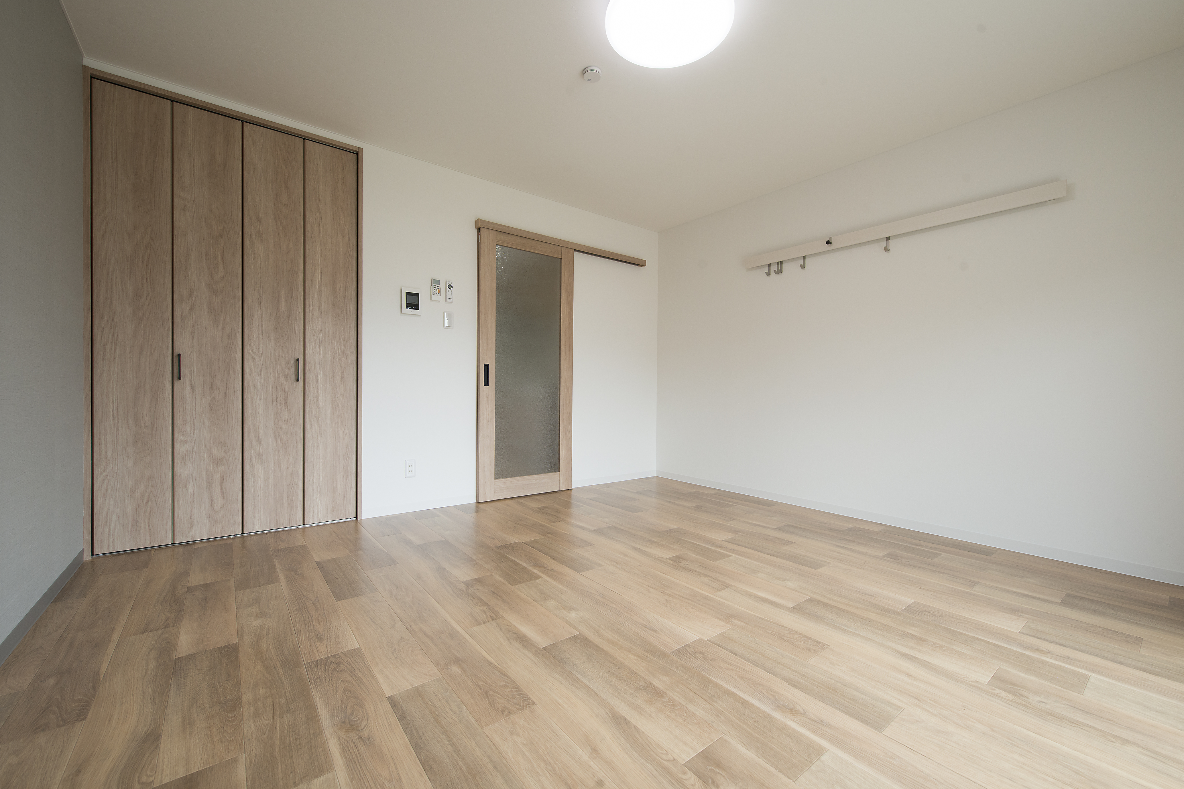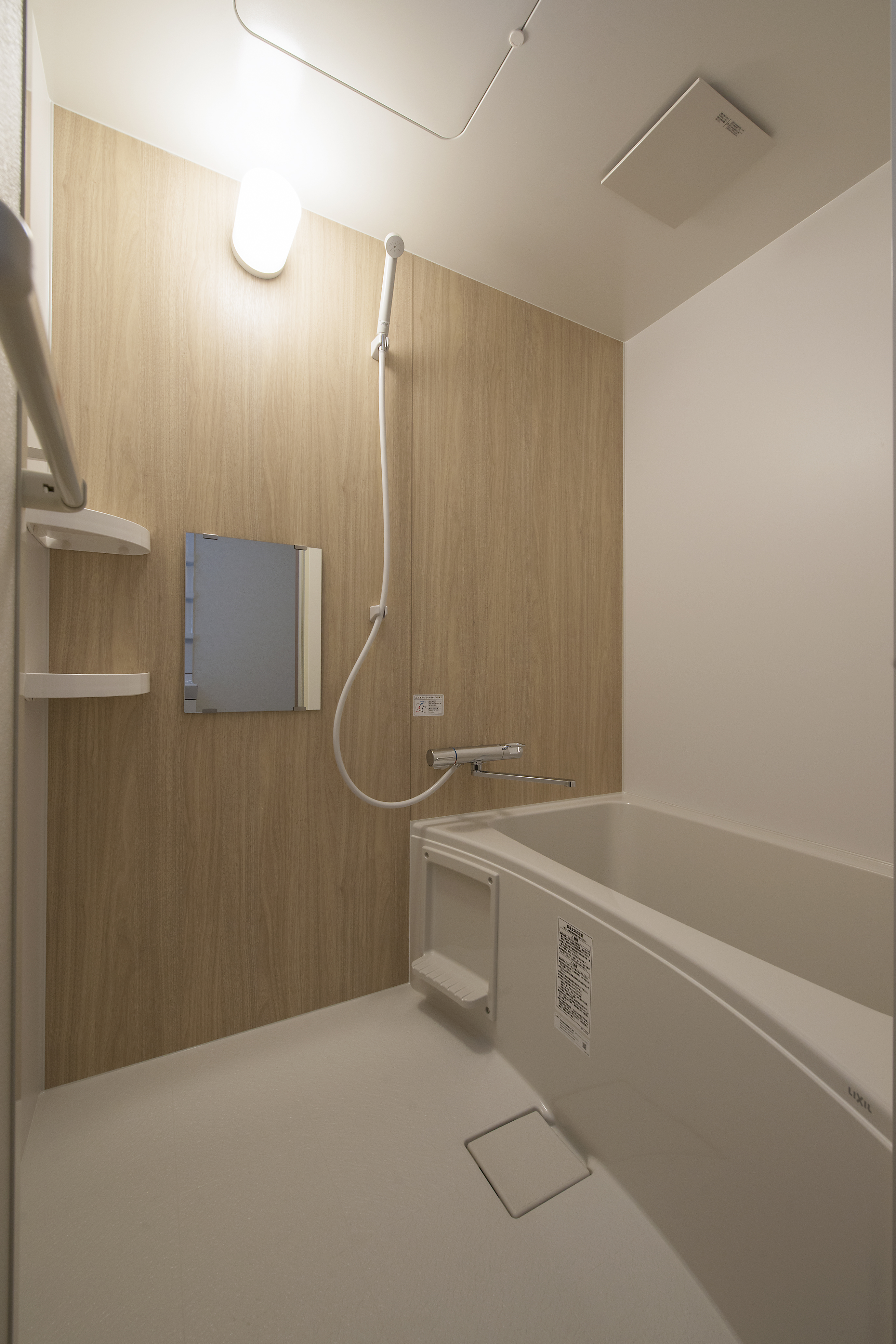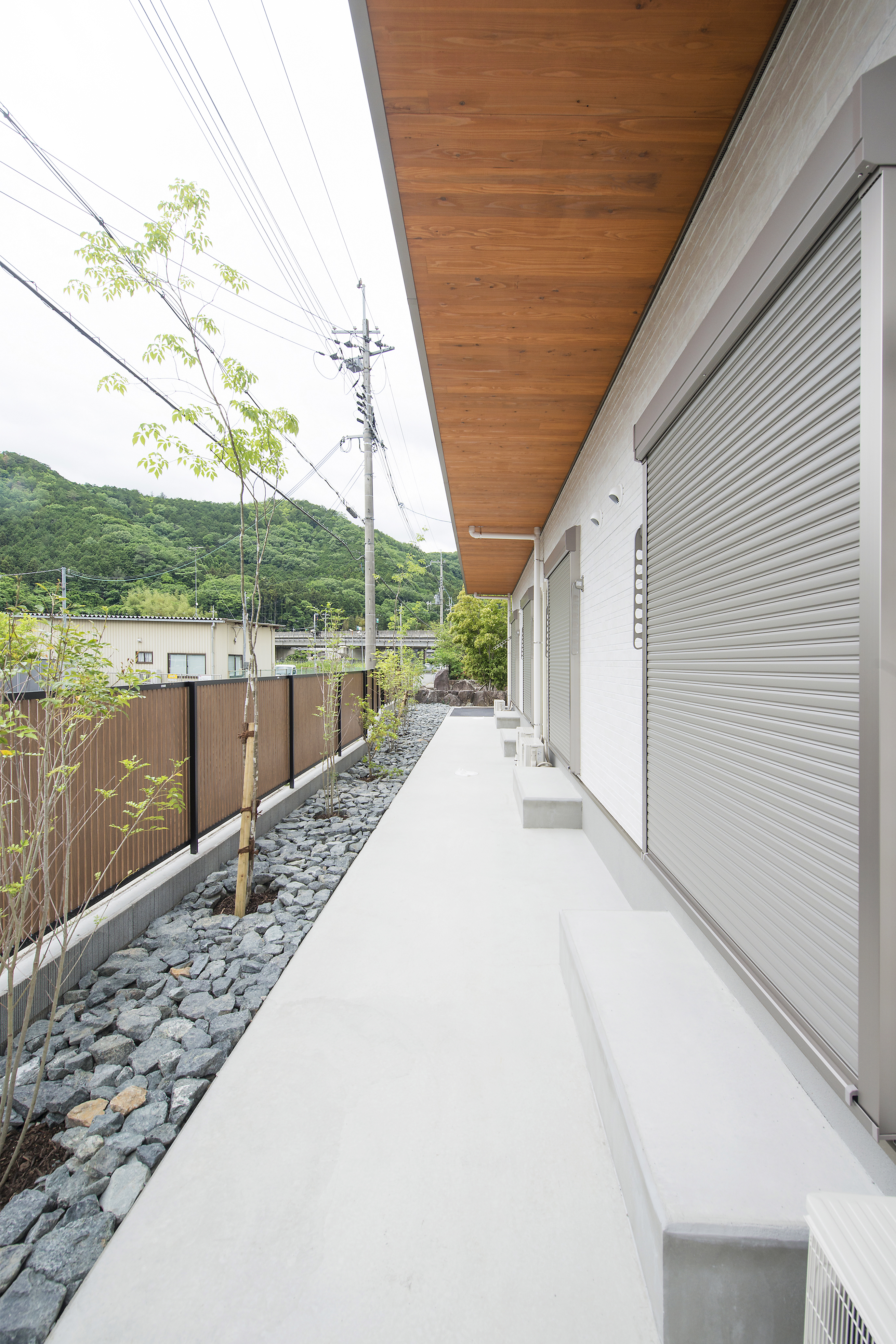 本建物は水平構面にCLTパネルを利用した木造軸組工法2階建てで、軒天と共用廊下および階段の天井をCLTの現し仕上げとし、併せて木目を基調とした内装とすることで木のぬくもりを感じられる住環境を実現しました。