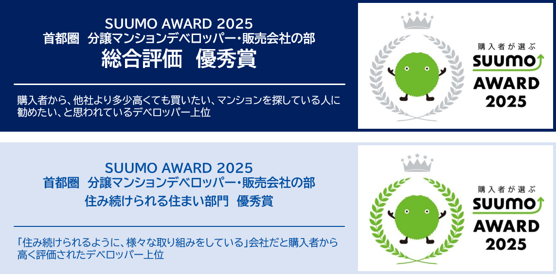 新築マンション購入者の満足度調査「SUUMO AWARD 2025」(首都圏版)「総合評価」で優秀賞受賞