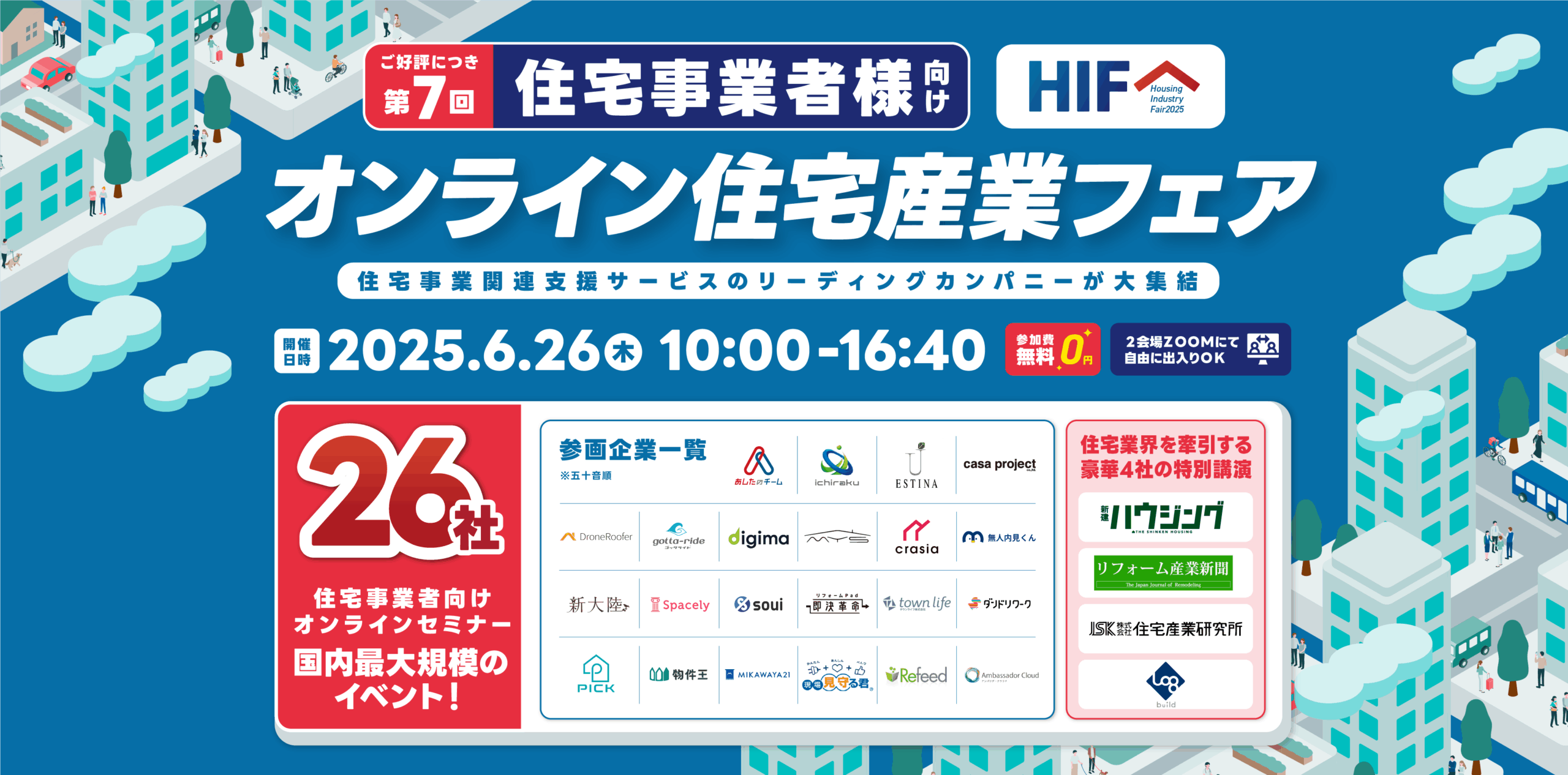 建設テック企業・株式会社log buildの代表取締役 中堀健一氏が、オンライン住宅産業フェアにて特別講演を実施します。地域工務店の生産性を最大化するスマートビルダー戦略を公開。