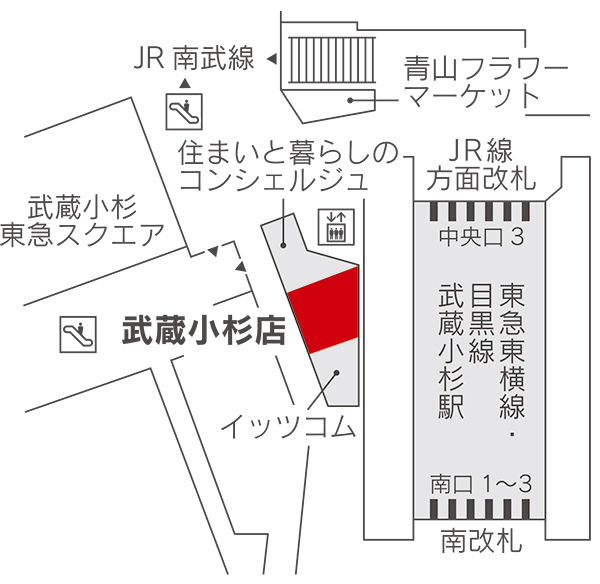 ・所在:神奈川県川崎市中原区小杉町三丁目1301番 武蔵小杉東急スクエア 1F