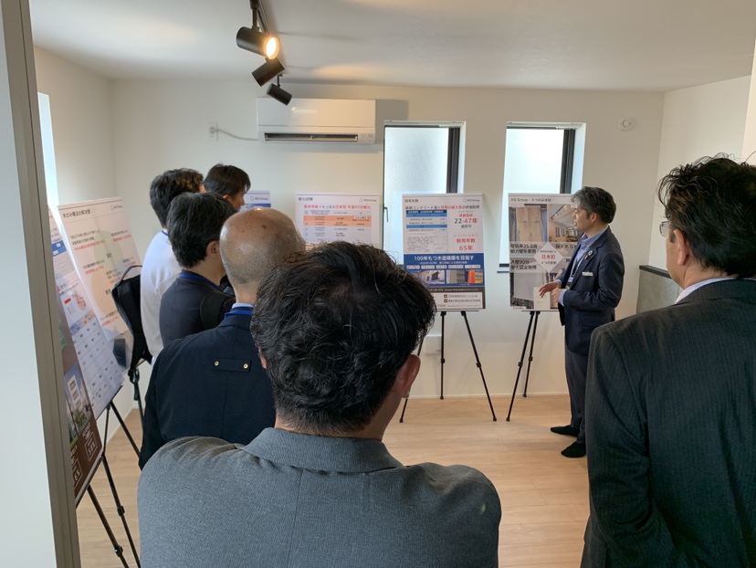 このほど開催された「建設新時代を勝ち抜く『二刀流』経営セミナー」では、5月に完成したばかりの純木造4階建てマンション「AQフォレスト大宮桜木町」の見学、中大規模木造建築を対象とした「AQ木のみ構法」の解説などを実施。岡山県や長野県など、遠方を拠点とする建設会社も多く、セミナー参加の経緯については「住宅だけでなく、非住宅(中規模)に重点を置き、エリア拡大を考えている」、「大断面を使用した木造住宅を検討していたが、高額のため断念した」、「中規模のマンション建築を検討しており、AQ木のみ構法の活用でぜひ、木造にチャレンジしたい」といった声が寄せられました。