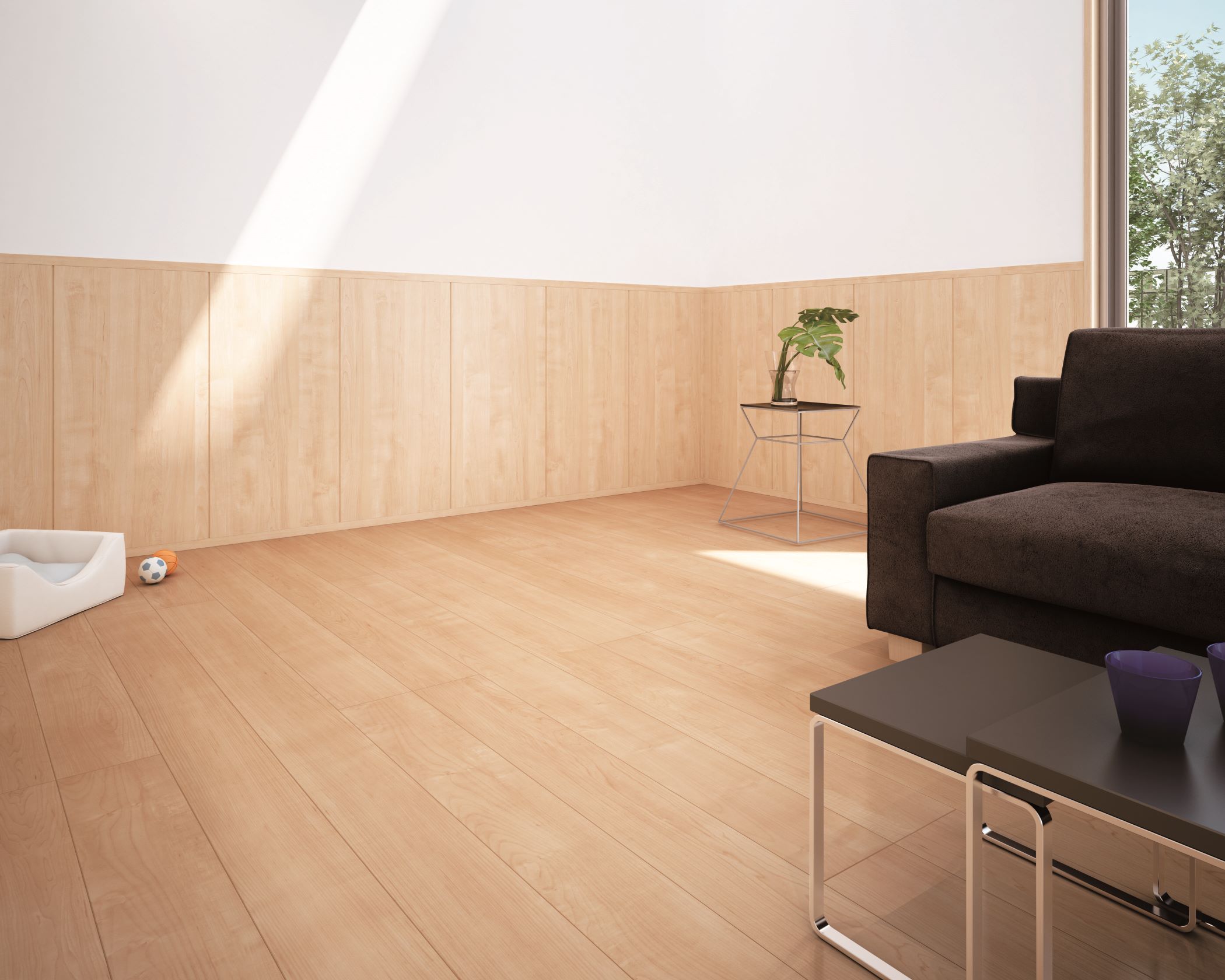 傷がつきにくい特殊強化化粧シートを採用した壁材で、ペットの爪による引っかき傷がつきにくいほか、ペットの毛やほこりが集まりにくい巾木を採用しています。