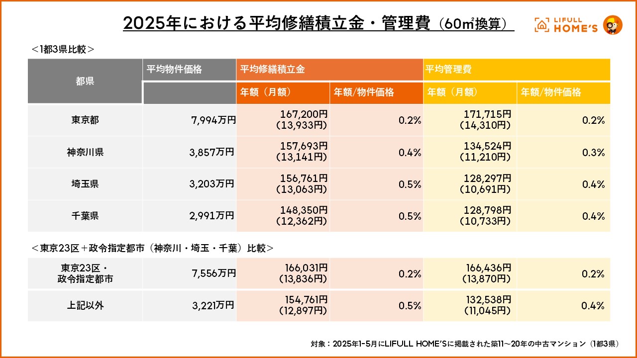 事業を通して社会課題解決に取り組む、株式会社LIFULL(ライフル)(本社:東京都千代田区、代表取締役社長:伊東祐司、東証プライム:2120)が運営する不動産・住宅情報サービス「LIFULL HOME’S」は、1都3県における中古マンションの修繕積立金・管理費の動向を調査しました。