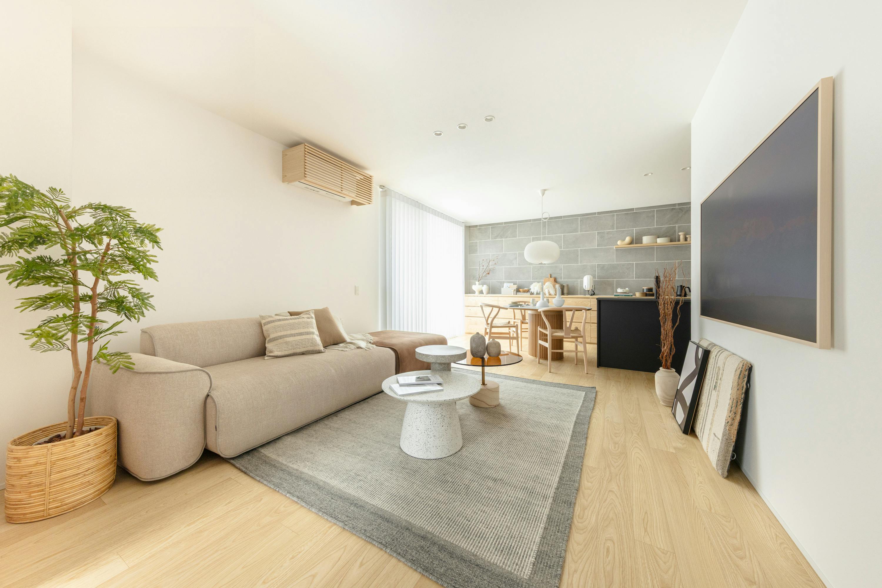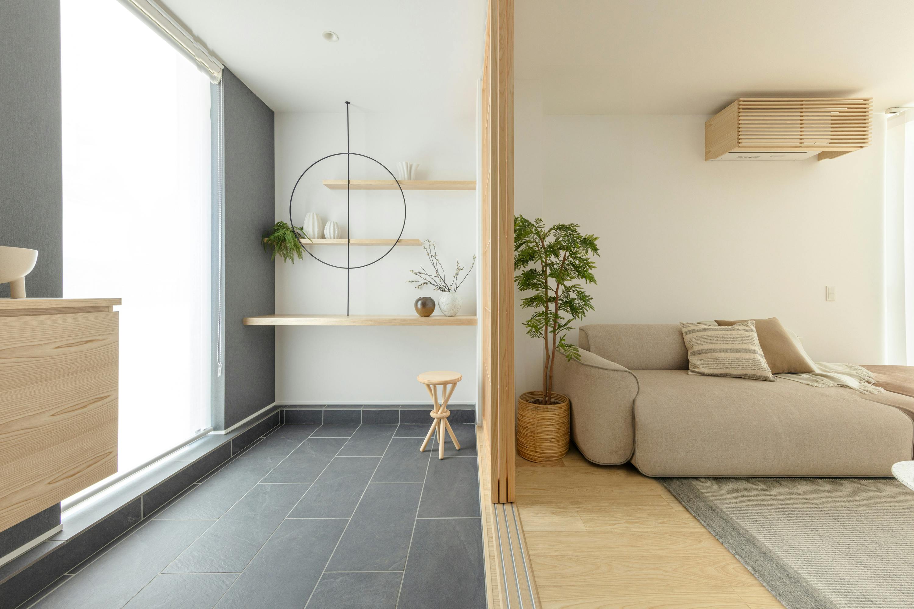 色彩はナチュラルウッド×グレージュをベースとした落ち着いた配色。