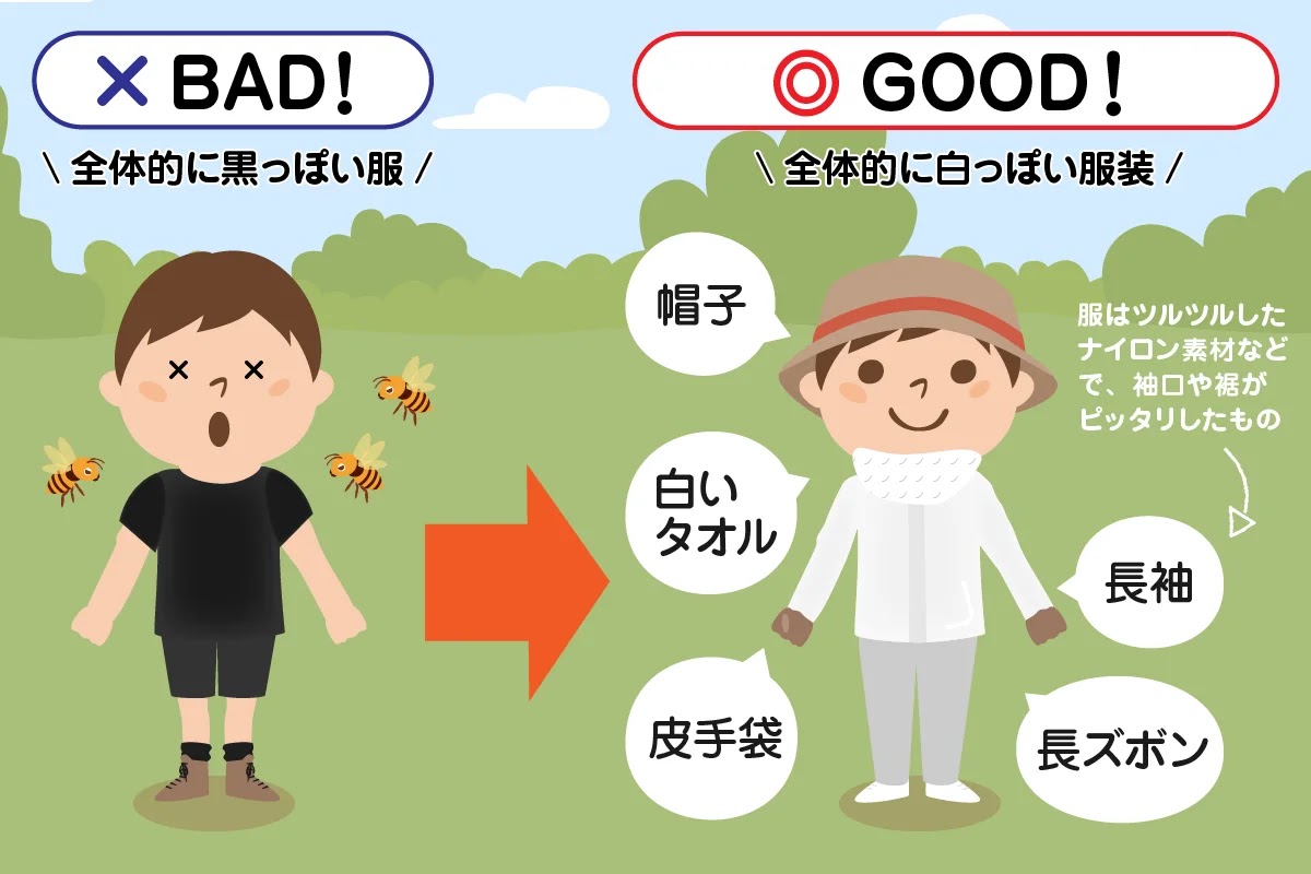 防護服を着ても刺されることはありますし、暑さで熱中症におちいる危険もあります。