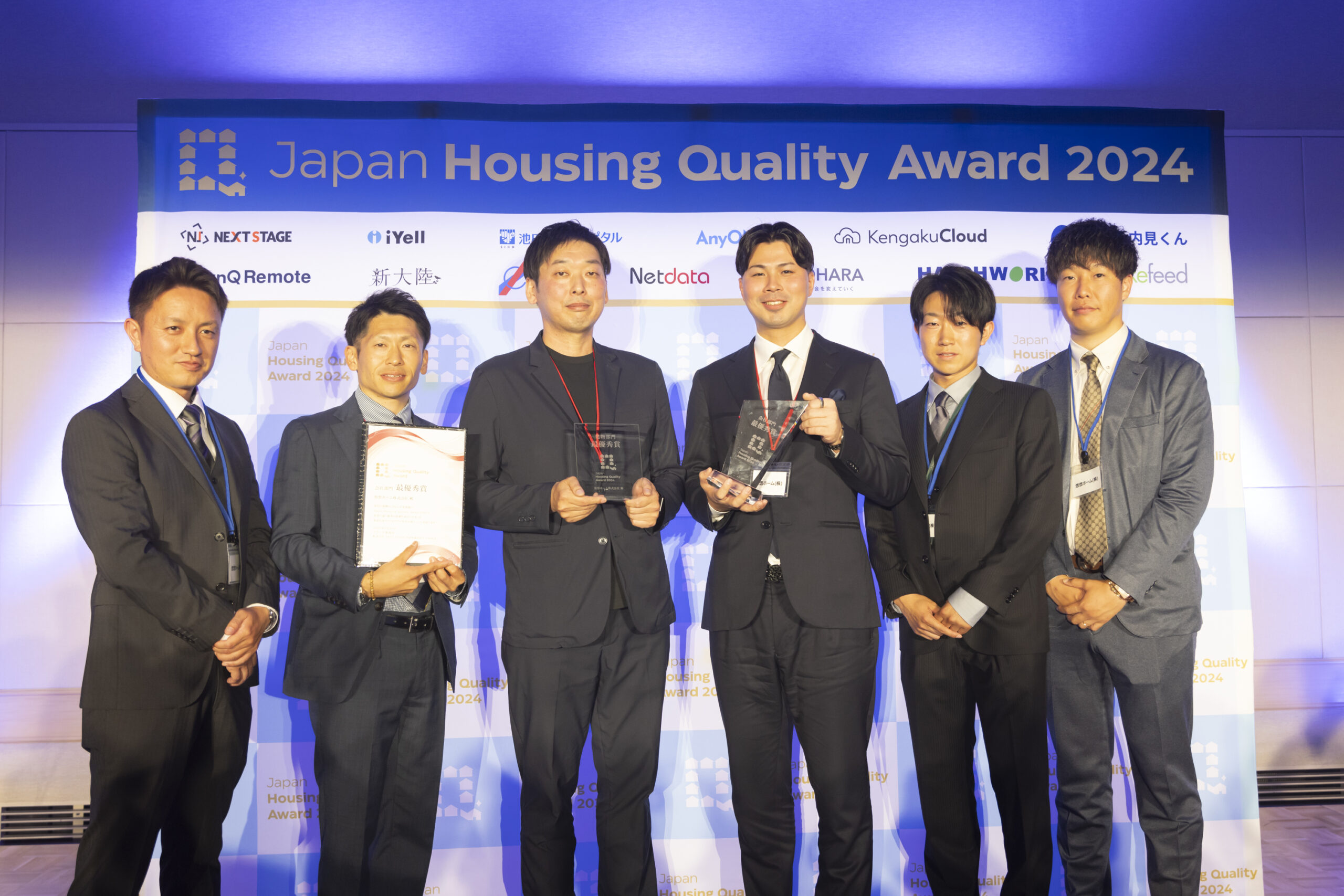 悠悠ホーム株式会社(本社:福岡県大野城市)は、株式会社NEXT STAGE主催にて、2025年5月28日に開催された「Japan Housing Quality Award 2024(ジャパンハウジングクオリティアワード)」にて、「会社部門」および「建物部門」の最高賞である、最優秀賞を受賞しました。全国の住宅事業者が“製造品質”を競い合う本アワードにおいて、当社のものづくり力と現場品質が高く評価されました。