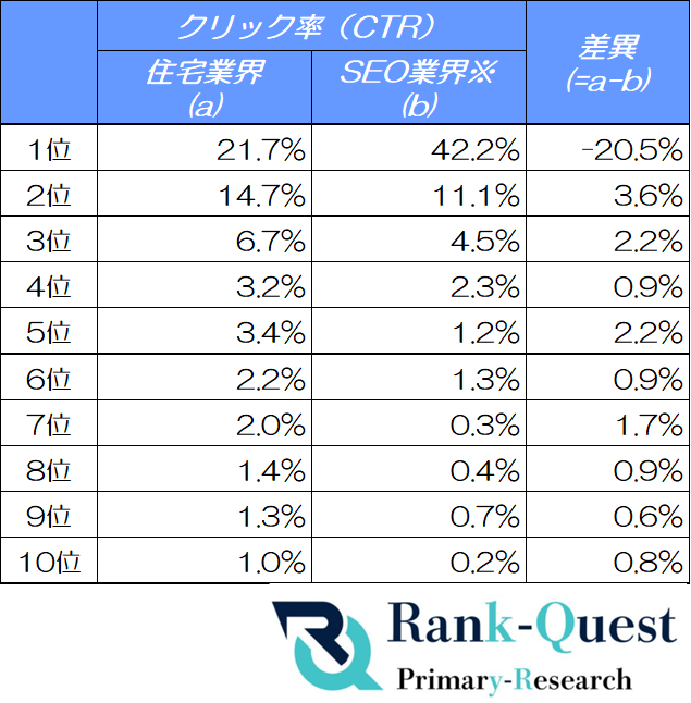 2-1. 住宅業界は「1位」のクリック率がSEO業界平均より大幅に低い