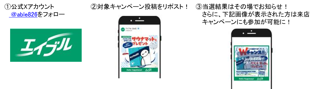 株式会社エイブル(本社:東京都港区、以下エイブル)は、2025年6月23日(月)より、エイブル公式Xアカウントをフォローの上、対象のキャンペーン投稿をリポストして下さった方の中から、抽選で“ベイマックス”のボディの色であるシロ(46)にちなんで、合計46名様にエイブルオリジナル『ベイマックス』デザインのサウナマットがその場で当たるSNSキャンペーンを実施いたします。