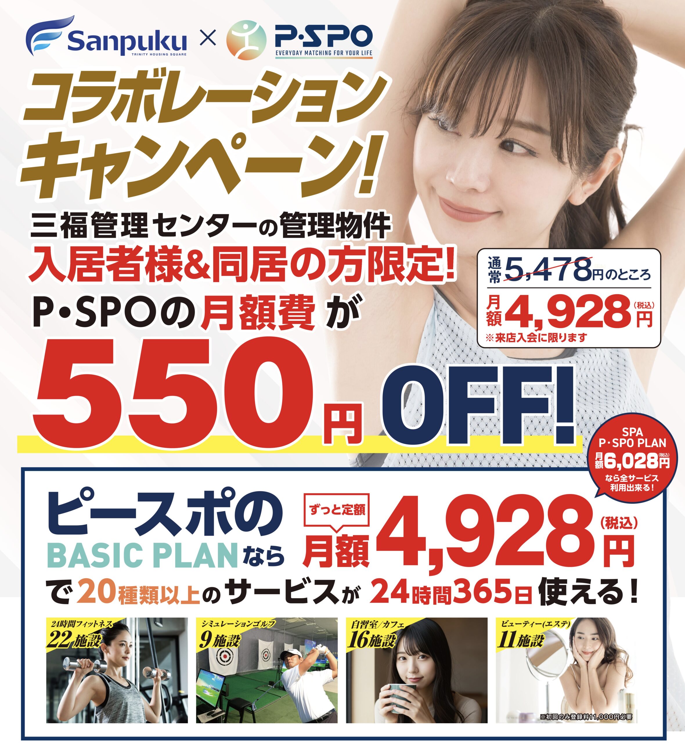 三福管理センター管理物件入居者、同居者限定でP・SPO月会費が550円OFF!