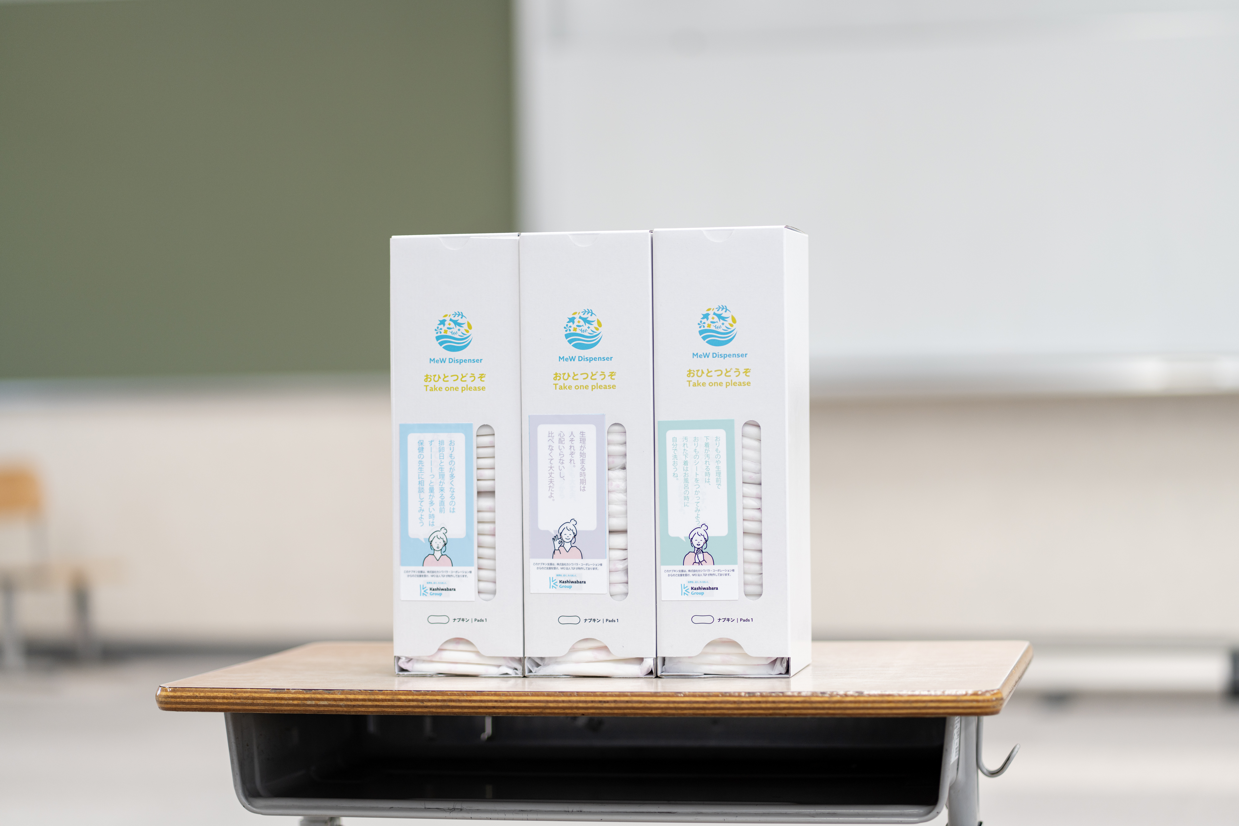 今回寄贈した生理用ナプキンは、産婦人科医監修の月経に関するメッセージが添えられた収納ボックスに入れて設置されており、子どもたちが自然と月経について学びながら、必要なときに安心して使える環境が整えられています。