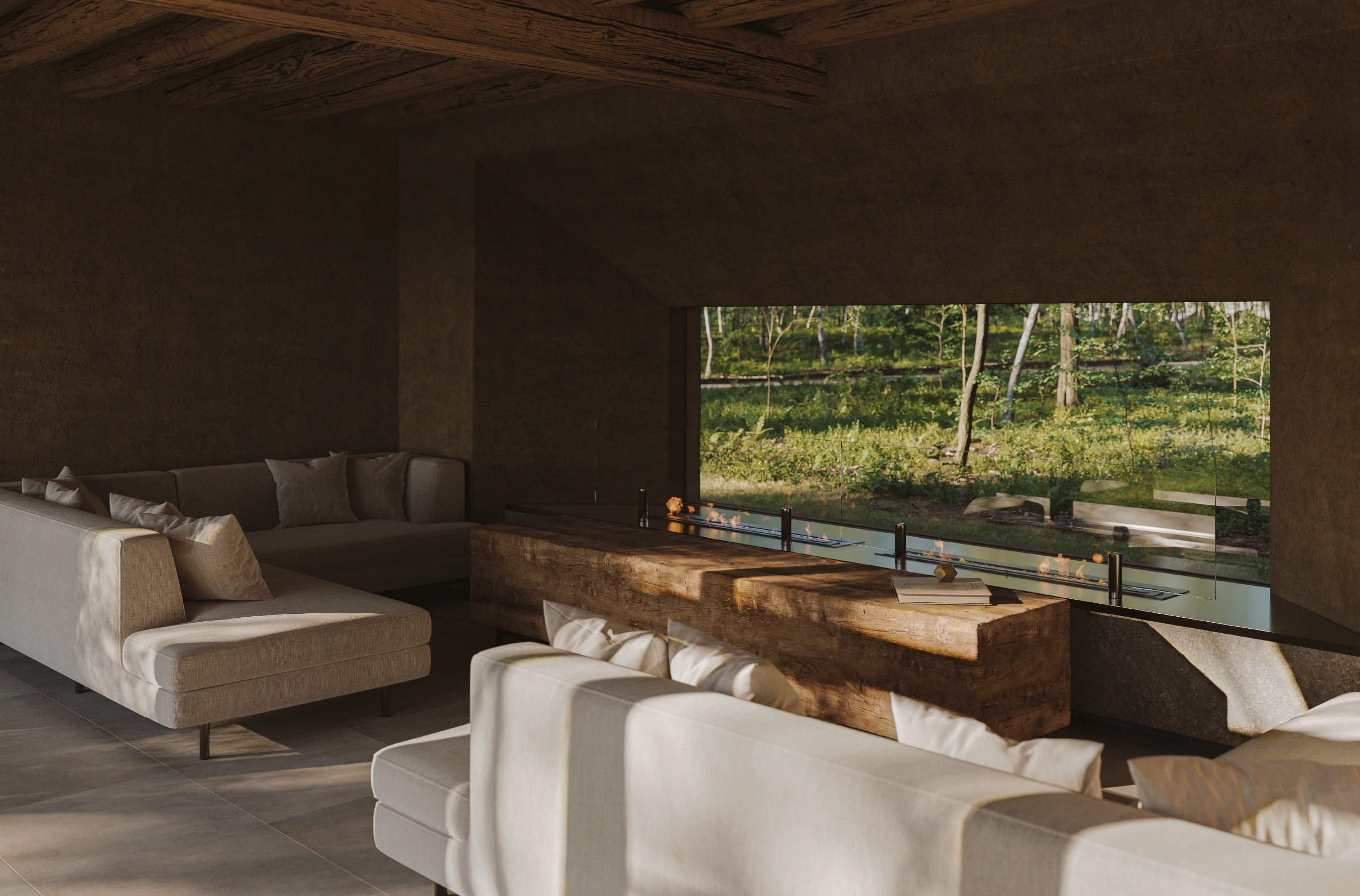 会場となる「ベルギー プライベートホーム」は、菱田昌平氏が「古る、美る。」というコンセプトのもと、一棟一棟を手仕事で手がけた共同所有型別荘。地元軽井沢の木材や土、石などの素材を用い、時間とともに風合いを深めていく建築は、今回の展示により現代アートとの有機的な融合を遂げます。