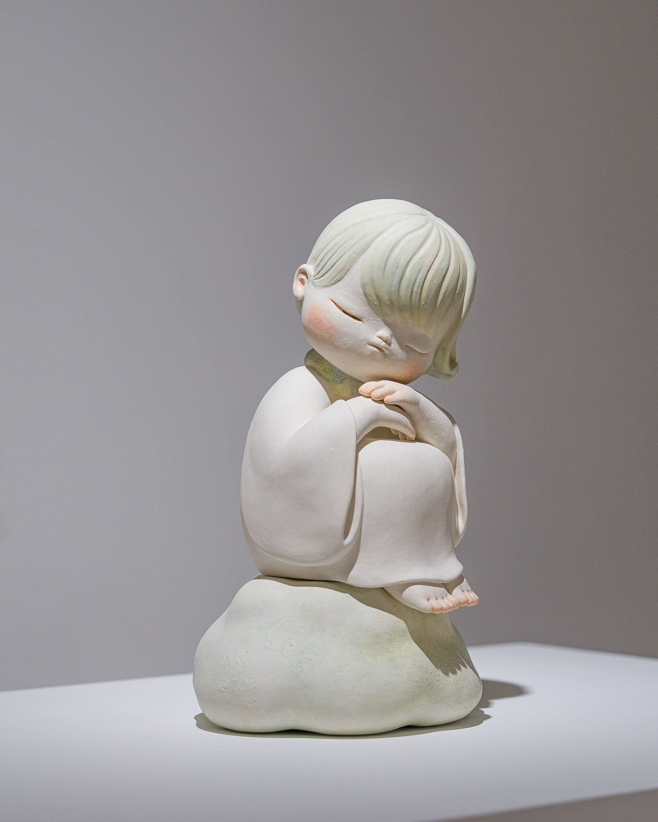 1994年岐阜県生まれ。2017年東京藝術大学卒業。2020年同大学院修士課程工芸専攻(陶芸)修了。2018年大学院在籍中、ポーランドのヴロツワフ美術大学に半年間留学し、その歴史と自然に触れる。磁土によるキャスティング技法と手作業による造形を組み合わせ、赤ん坊や幼いこどもをモチーフとした彫刻を制作。赤ん坊や幼いこどもという存在は、無垢の象徴であり誰しものかつての姿であるからこそ、混沌とした現代を生きる私たちの想いを投影し、祈りを託すことができるのではないだろうか。高温での焼成によって強固な物質へと変化する磁土による制作を通じて、人々の祈りの依り代となる作品へ昇華しようと志向している。