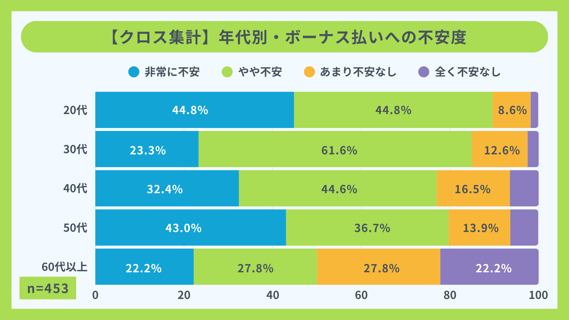 【クロス集計】年代別・ボーナス払いへの不安度