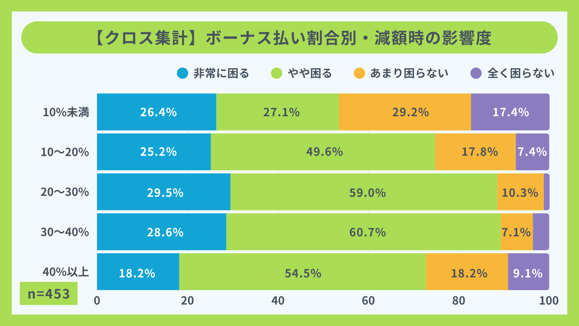 【クロス集計】ボーナス払い割合別・減額時の影響度