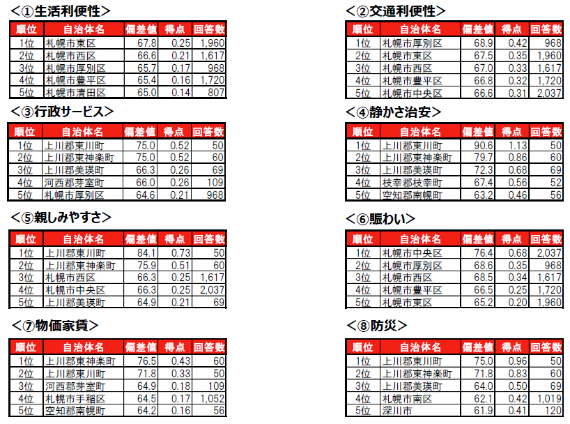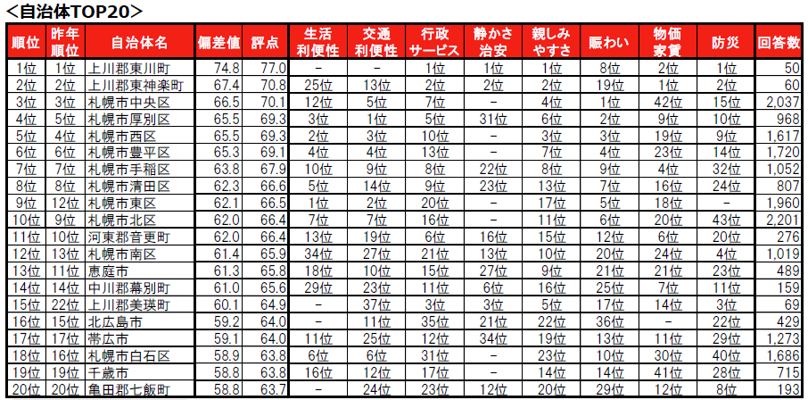 街の住みここち(自治体)ランキング2025<北海道版>自治体TOP20・因子別TOP5