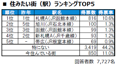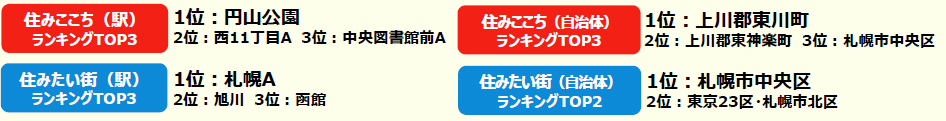 ※「住みたい街(駅)ランキング」は、北海道居住者の2025年の回答を北海道内の駅を対象にしてランキングを集計しています。「住みたい街(自治体)ランキング」は、北海道居住者の2025年の回答を全国の自治体を対象にしてランキングを集計しています。