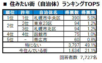 ※「住みたい街ランキング」では、行政区はまとめて一つの自治体として集計していますが、札幌市は行政区を分けて集計しています。
