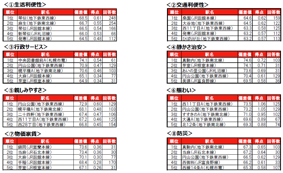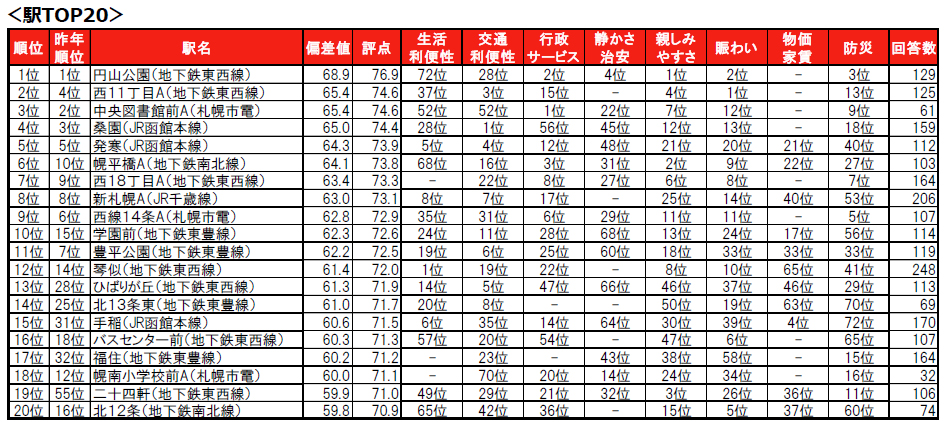 街の住みここち(駅)ランキング2025<北海道版>駅TOP20・因子別TOP5