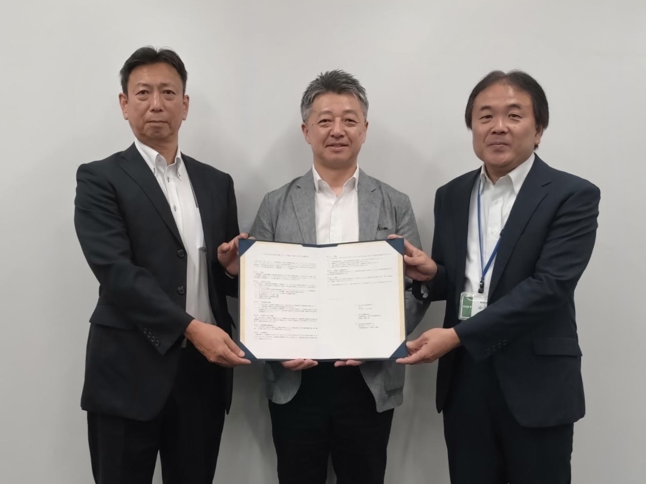 (左より)公益財団法人 神戸市公園緑化協会理事長 鍵本敦様、株式会社アールシーコア代表取締役社長 壽松木康晴、神戸市建設局長 小松恵一様