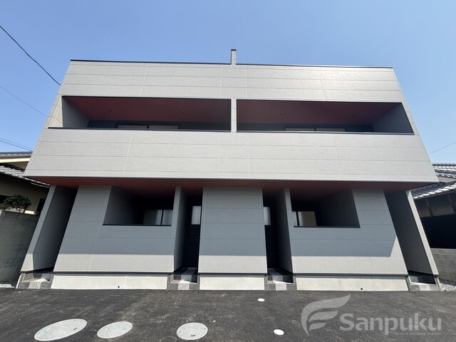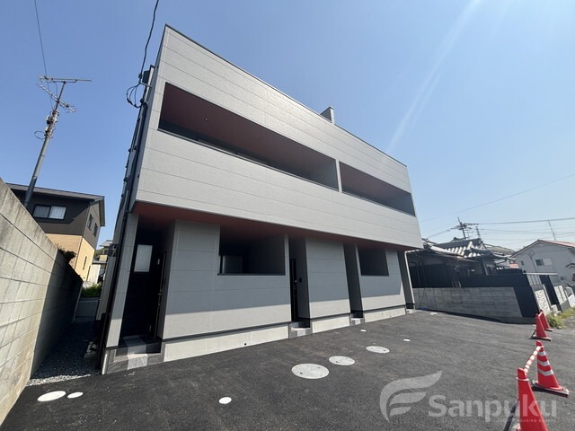 「サンライト鷹子」は、伊予鉄「鷹ノ子駅」徒歩圏内にあるメゾネットタイプのアパートで、2025年5月完成の新築物件です。