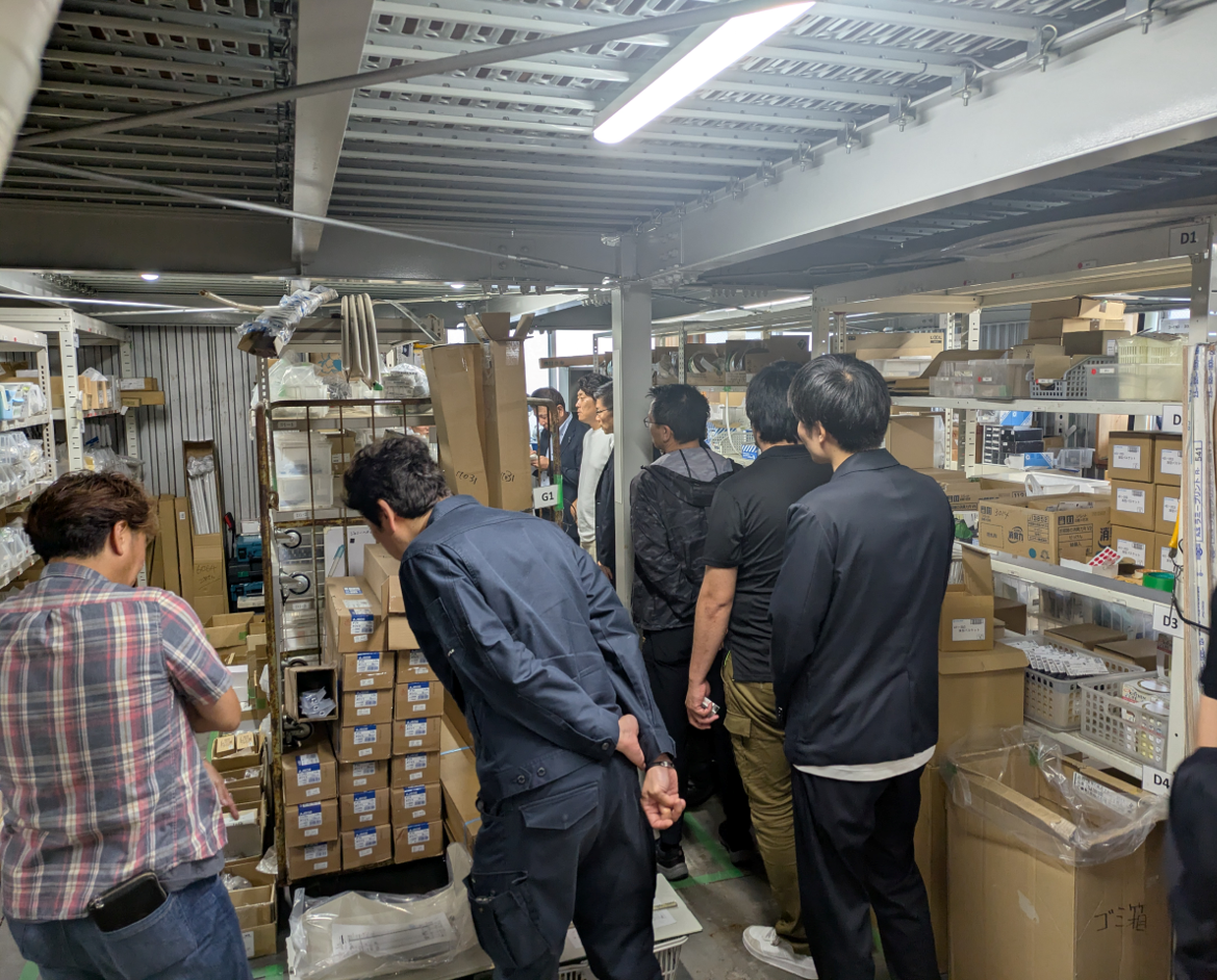 また、ジェイエーアメニティーハウスの社内倉庫の見学も実施し、今回の研修テーマであるコスト削減と工期短縮につながる、資材管理の方法について触れていただくことで、より包括的な研修となりました。