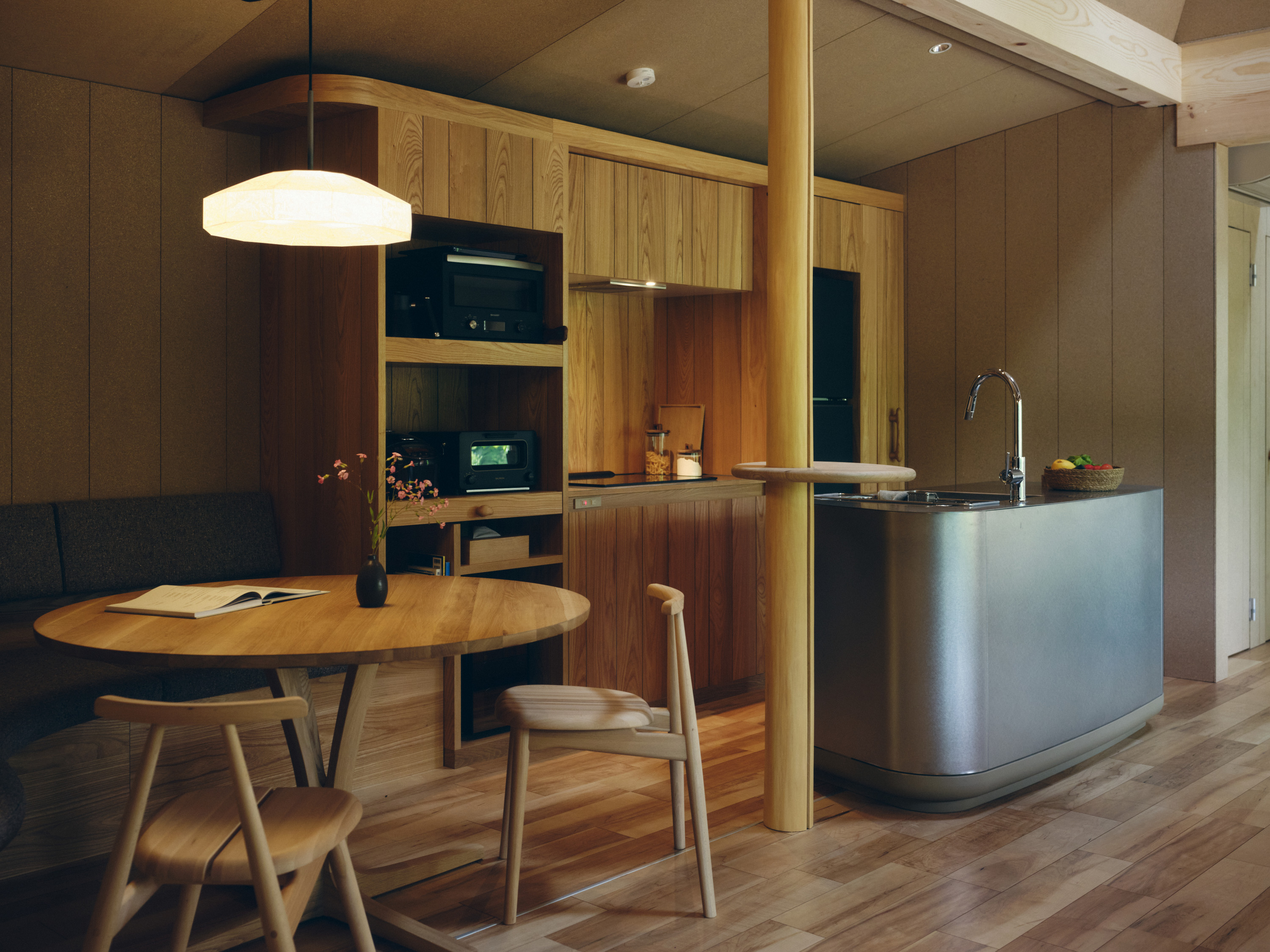 蓼科1stでは、「SANU CABIN MOSS」として初めてLargeタイプのキャビンが登場。よりゆとりのある室内空間で、家族や仲間と気兼ねなく過ごせる空間を実現しています。