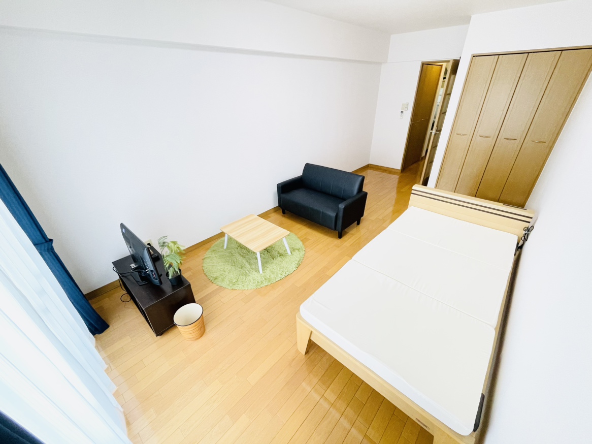 ①家具・家電完備:ベッド、テーブル、テレビ、洗濯機、冷蔵庫、電子レンジなど、すぐに生活可能な設備を標準装備