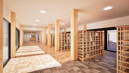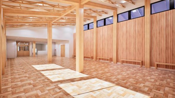 SE 構法を活用し、燃えしろ設計により木質感あふれる空間とした「桜の聖母学院 中学校新校舎」イメージ