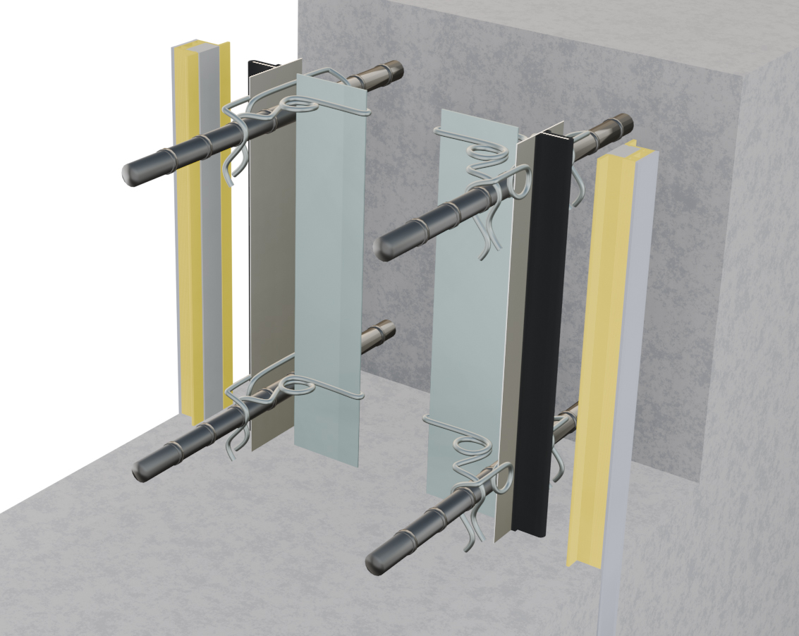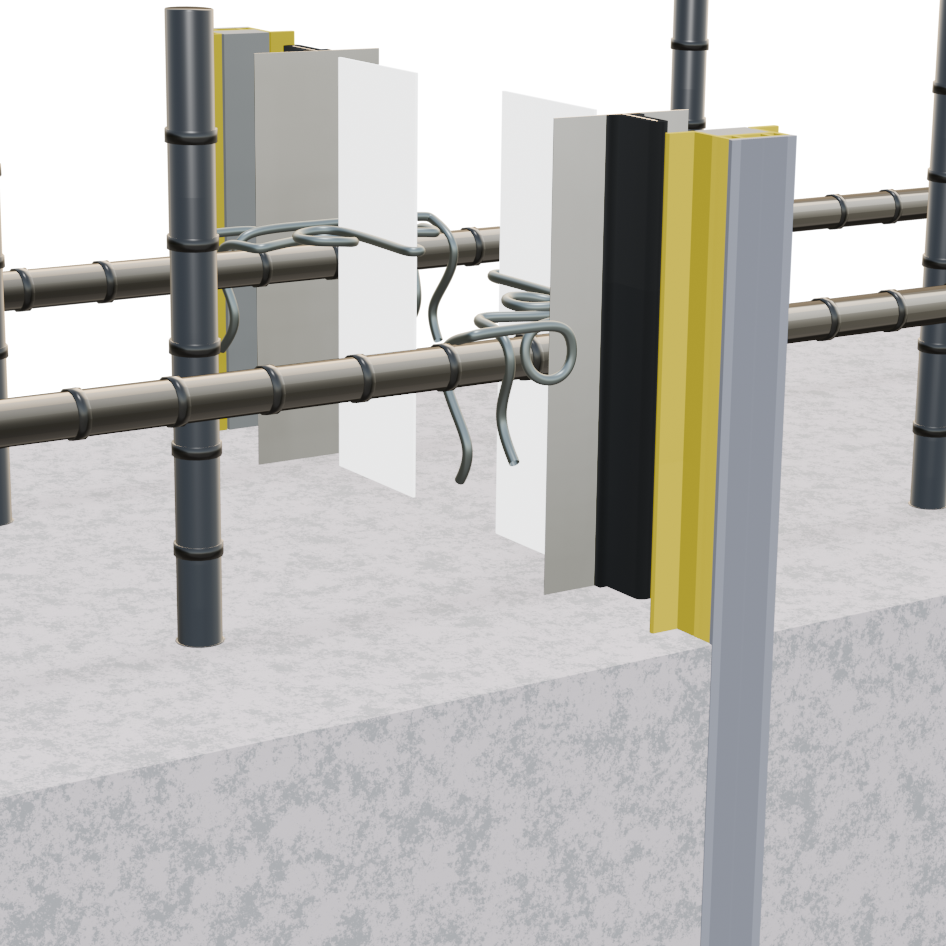 KB目地はコンクリート内部に非加硫ブチルゴム製の止水材を設置することで、長期間にわたり高い止水性能を維持できます。鉄筋のかぶり厚内で止水する設計は、構造物の長寿命化や鉄筋の腐食防止に寄与する点で、特に建築分野でも注目されています。